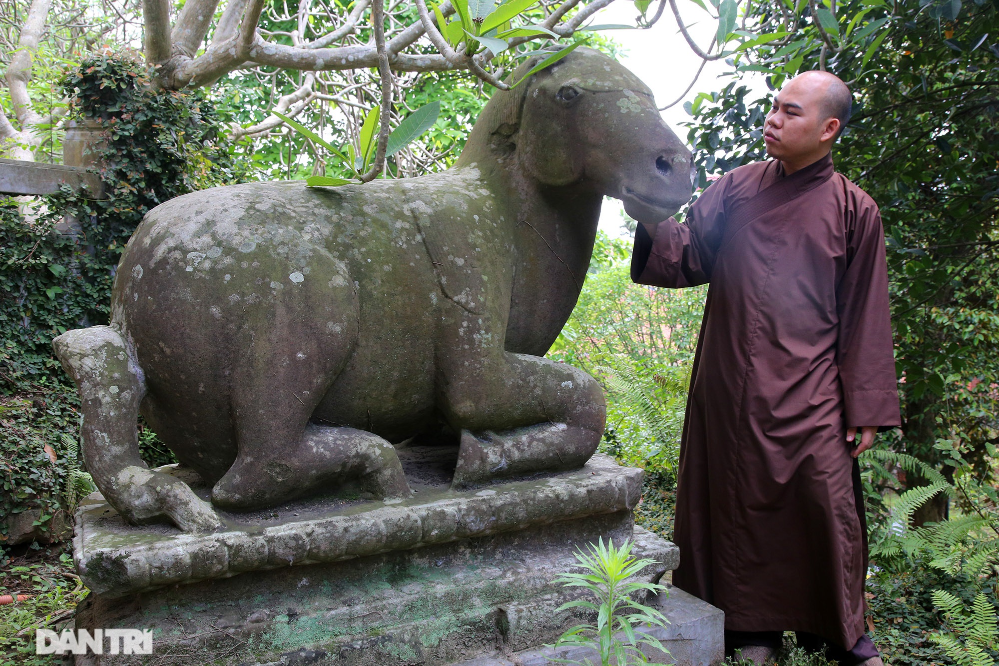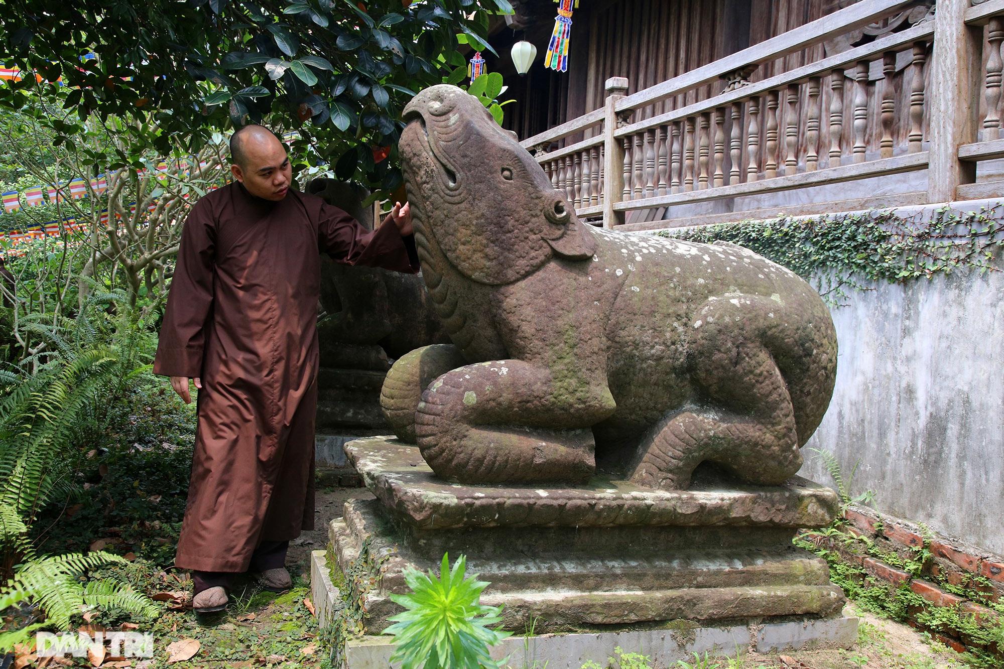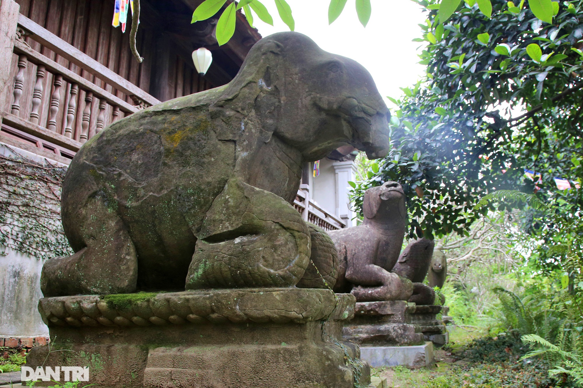 Sư tử đá phía phải Tam Bảo cũng đã được phục chế lại phần mặt do bị hư hỏng.