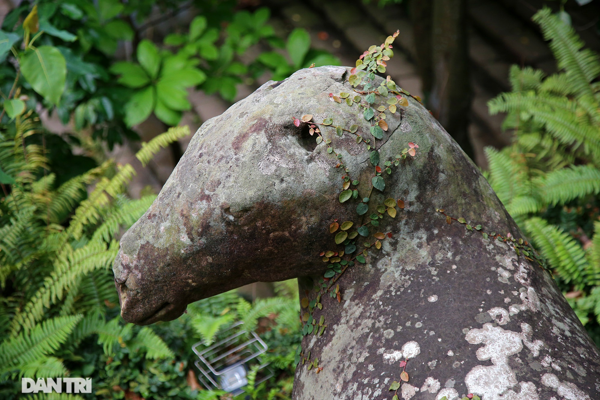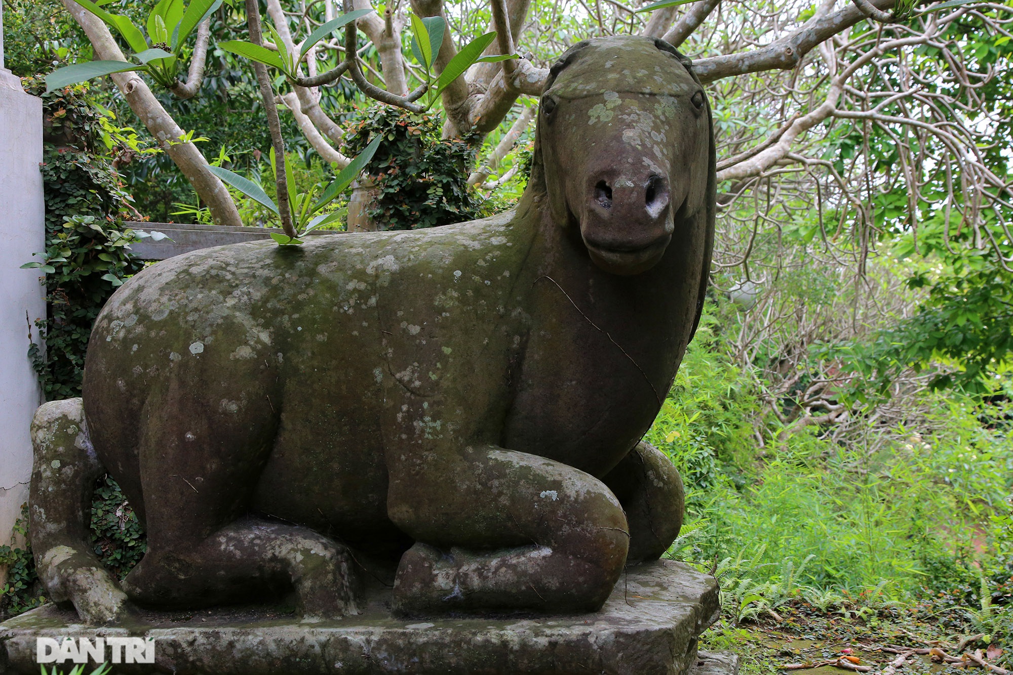 Cặp ngựa cũng bị mất đuôi và tai, trong hình là ngựa đá ở phía phải Tam Bảo. Ngựa được cho là biểu tượng cho năng lượng và sự nỗ lực trong việc hành Phật pháp, là phương tiện di chuyển của tâm.
