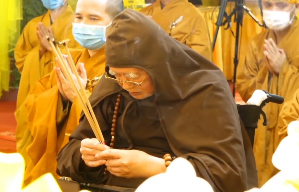 Lúc nãy, Hòa thượng Thích Thiện Nhơn đã cùng chư tăng trì chú gia trì, sái tịnh nơi này.