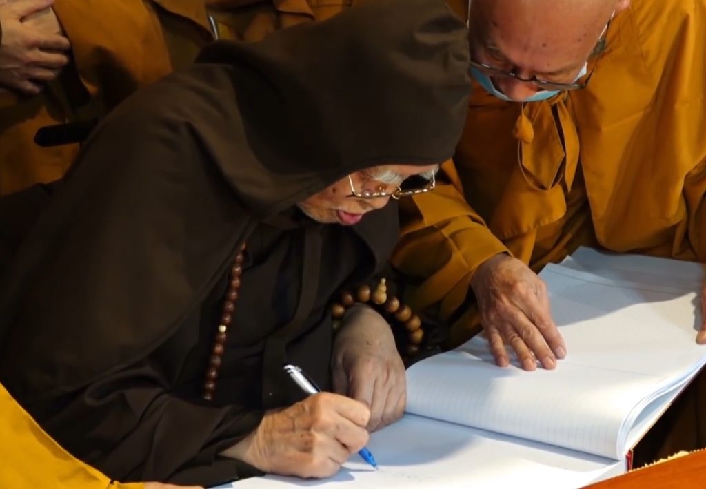 Cụ Trí Tịnh rất xúc động ghi vào sổ tang vài chữ: “Phật tổ tiếp nghinh” và dòng lạc khoản: “Trưởng sơn môn Trung Hậu, sa môn Trí Tịnh”.
