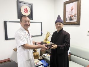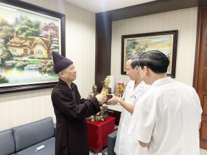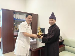 Cùng đón tiếp Hoà thượng còn có Thượng tá, BS Bùi Việt Hùng – Trưởng phòng Kế hoạch Tổng hợp; Thượng tá,TS. BS Nguyễn Quốc Dũng – Chủ nhiệm Khoa Phẫu thuật khớp.