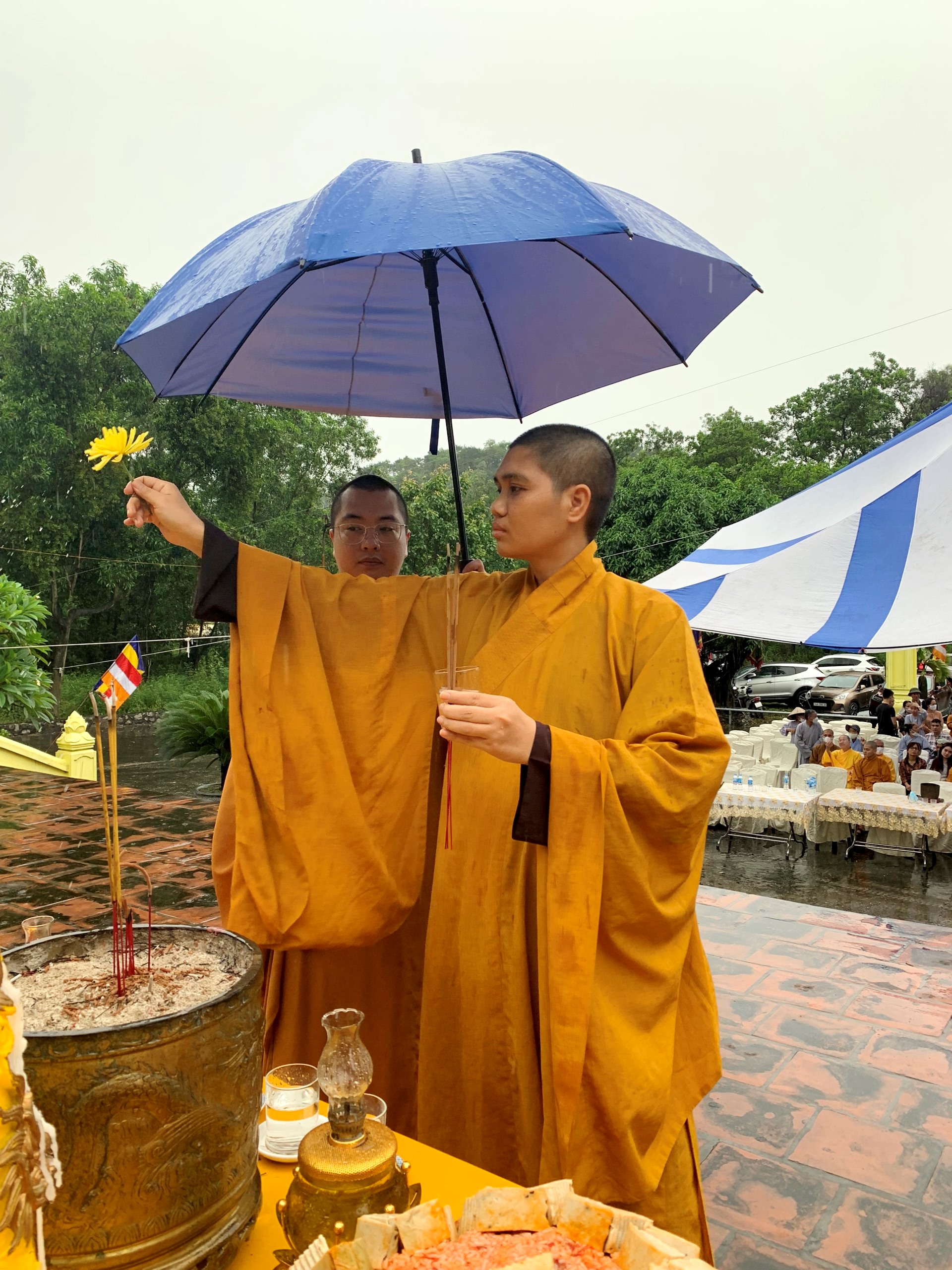 Buổi lễ còn có sự tham dự của quý vị đại biểu đại diện các cơ quan, doanh nghiệp, trường học đóng trên địa bàn và đông đảo tín đồ, Phật tử trong và ngoài thị xã.