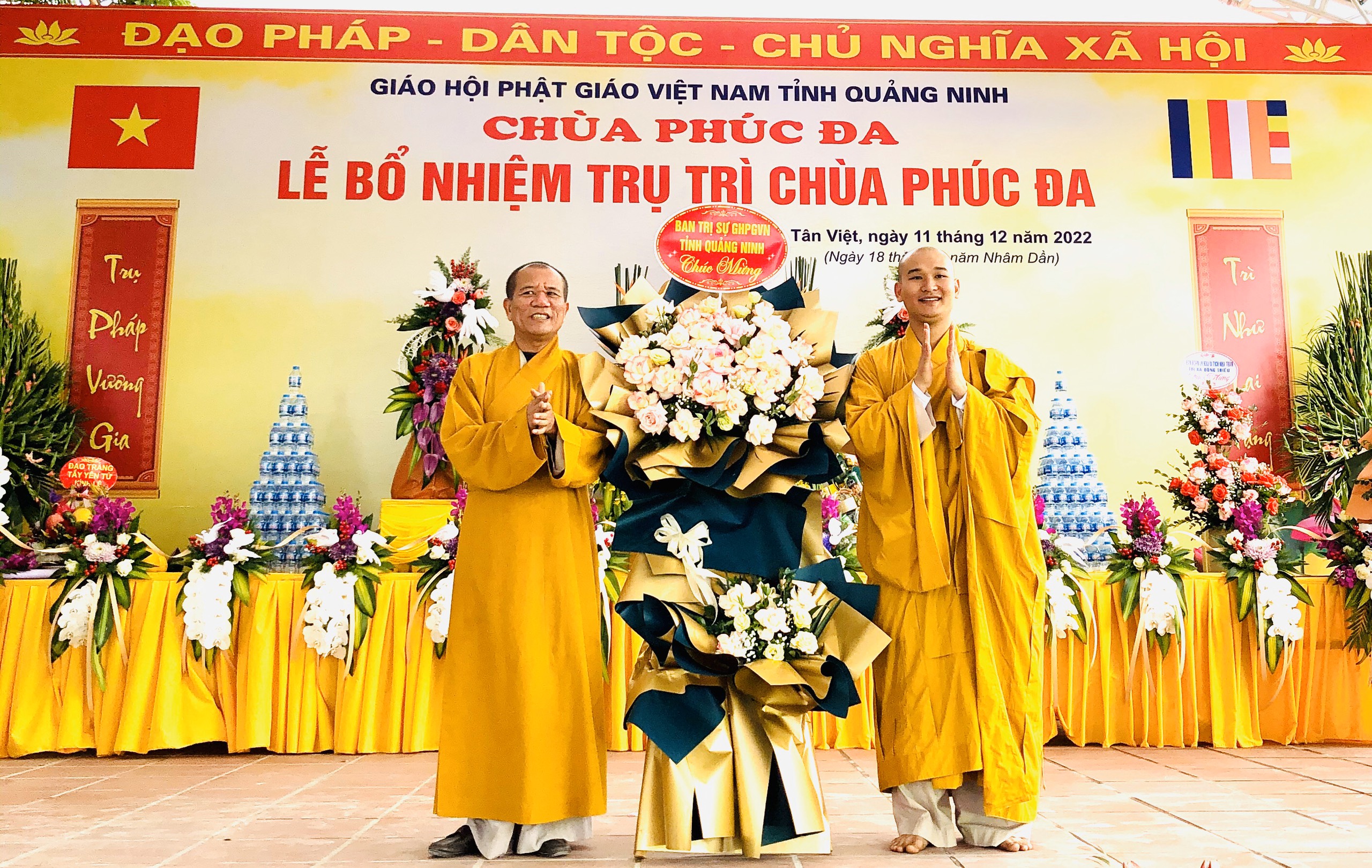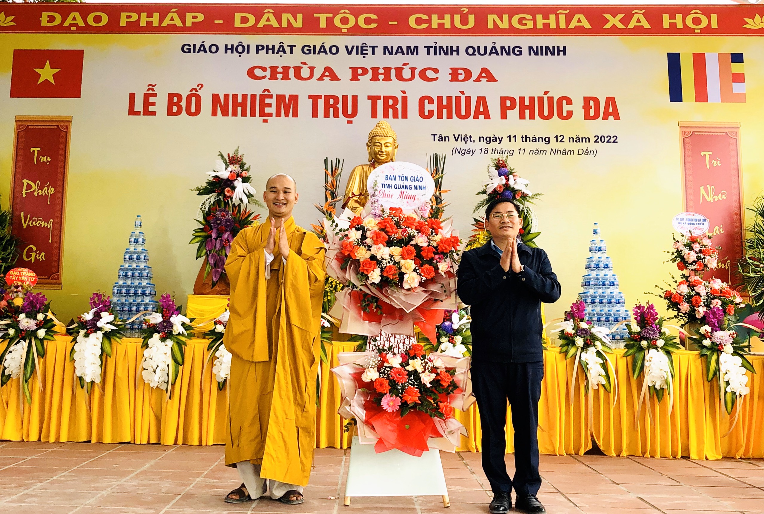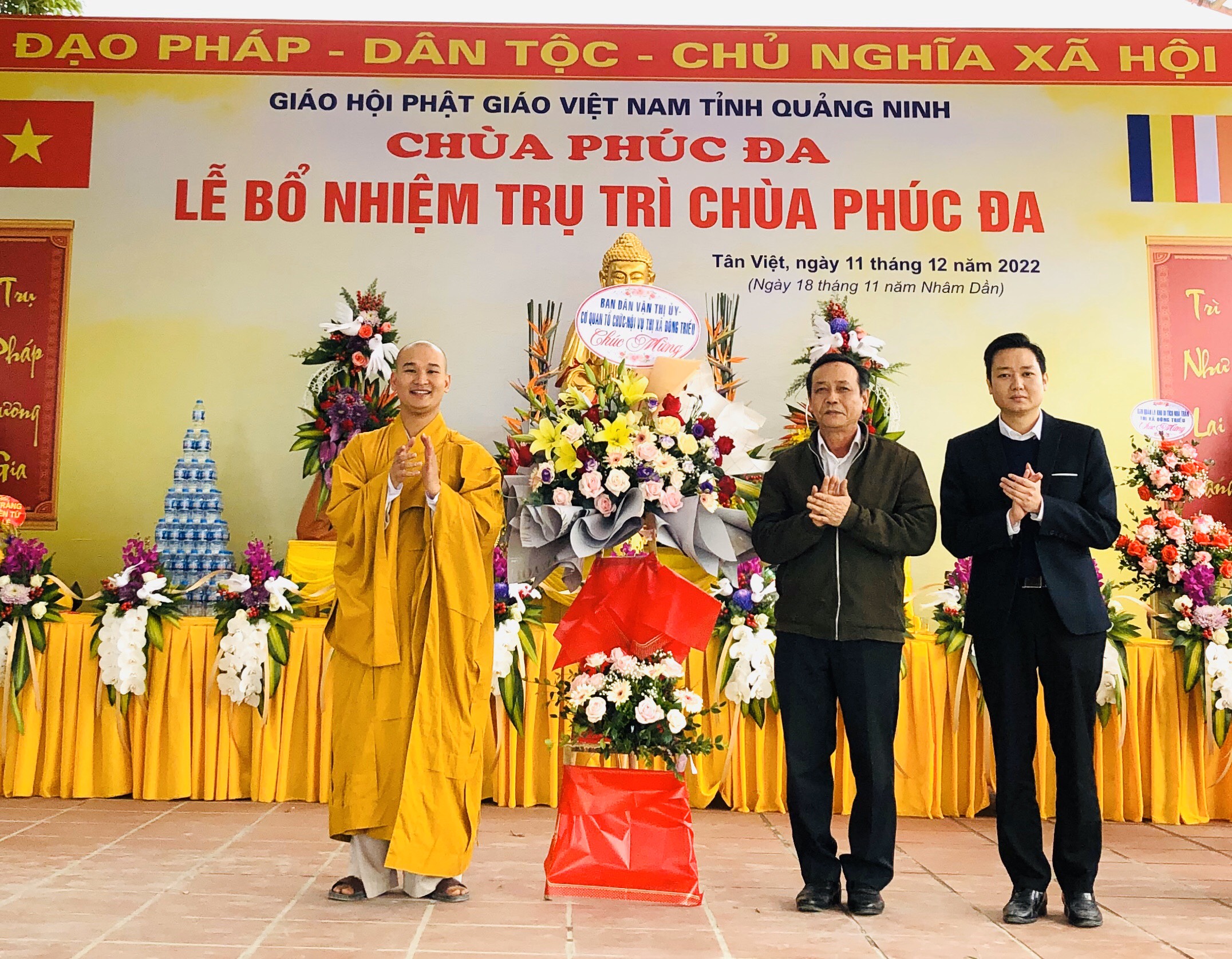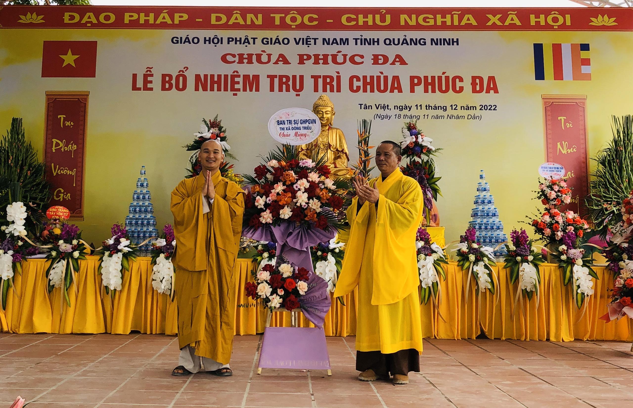Tại buổi lễ, Đại đức Thích Khai Từ – Ủy viên thường trực, Phó Chánh Văn phòng BTS GHPGVN tỉnh Quảng Ninh đại diện Ban Trị sự Phật giáo tỉnh công bố Quyết định bổ nhiệm trụ trì chùa Phúc Đa cho Đại đức Thích Khai Tiến.