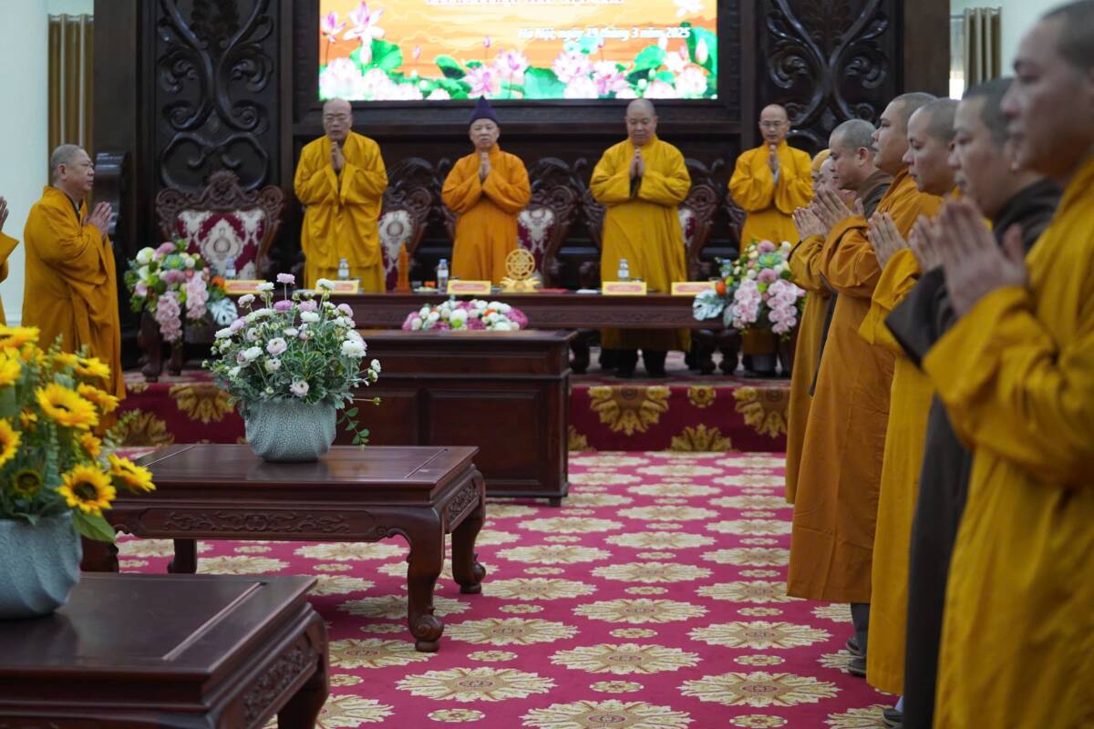 Chứng minh và tham dự có HT.TS Thích Thanh Quyết – Phó Chủ tịch HĐTST GHPGVN, Trưởng Ban Giáo dục Phật giáo Trung ương, Viện trưởng Học viện PGVN tại Hà Nội; HT.Thích Thanh Hiện – Ủy viên Thường trực HĐTS, Trưởng Ban Trị sự GHPGVN tỉnh Hưng Yên; HT. Thích Thọ Lạc – Ủy viên Thường trực Hội đồng Trị sự, Trưởng ban Văn hóa T.Ư GHPGVN; TT. Thích Lệ Trí – UVHĐTS, Phó Trưởng Ban Văn hóa Trung ương GHPGVN; TT.Thượng tọa Thích Đạo Hiển – Ủy viên Hội đồng Trị sự, Phó Viện trưởng Học viện PGVN tại Hà Nội, chư Tôn đức HĐTS, các ban ngành viện TƯ GHPGVN và chư vị Trưởng, Phó ban BTS GHPGVN 13 tỉnh thành phố phía Bắc đồng về tham dự.