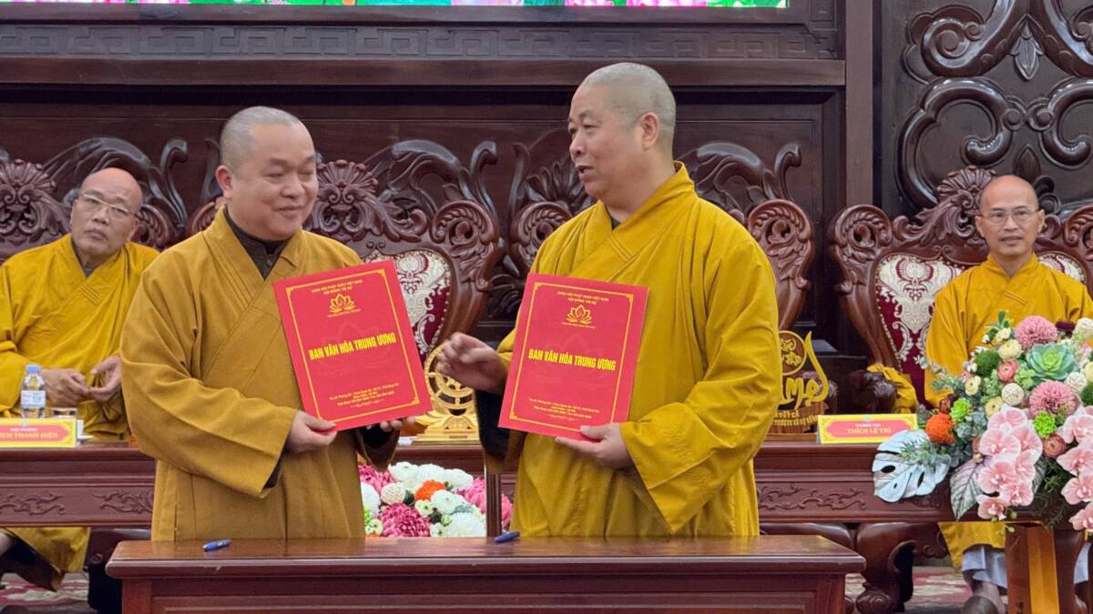 Tại buổi lễ, sau khi nghe TT. Thích Đạo Hiển – đệ trình dự thảo bản ký kết, Ban Văn hóa Trung ương và Ban Giáo dục Phật giáo Trung ương, các BTS GHPGVN 13 tỉnh thành phía Bắc đã tiến hành nghi thức ký kết bản ghi nhớ hợp tác thực hiện và lan tỏa 4 đề án: Ngôn ngữ, Pháp phục, nghệ thuật và một số biểu tượng văn hóa Phật giáo.
