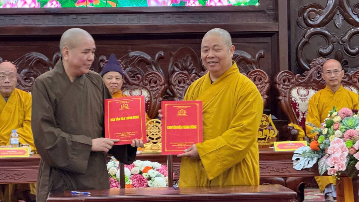Phát biểu tại lễ ký kết, Hòa thượng Thích Thọ Lạc cho biết, trong thời gian qua, Ban Văn hóa T.Ư đã tổ chức nhiều hội nghị, hội thảo về phương hướng, giải pháp, đề án tích cực bảo tồn văn hóa Phật giáo trong cuộc sống hiện đại. Đến nay, Ban Văn hóa T.Ư đã tổ chức lễ ký kết với một số tỉnh, thành trong cả nước. Hòa thượng giới thiệu khái quát về 4 đề án gồm: Ngôn ngữ, Pháp phục, nghệ thuật, kiến trúc và biểu tượng văn hóa Phật giáo Việt Nam.