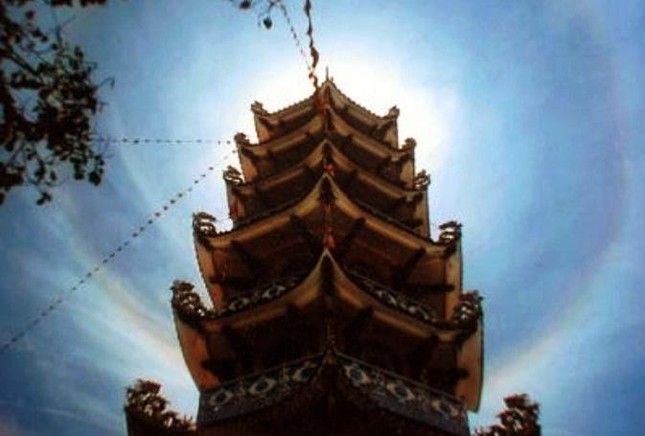 Điều đặc biệt nữa là, trên đỉnh bảo tháp cao hơn 20m của chùa Linh Phước đã 3 lần xuất hiện quầng sáng nhiều màu sắc rất đẹp (đường kính của quầng sáng tỏa rộng từ 10-50m) thu hút hàng ngàn người hiếu kỳ đổ về xem. Một số nhà tu hành và phật tử cho rằng đó là hào quang của Phật phát ra, còn các nhà khoa học nhận định đây là hiện tượng tự nhiên – một dạng cầu vồng không hoàn hảo.