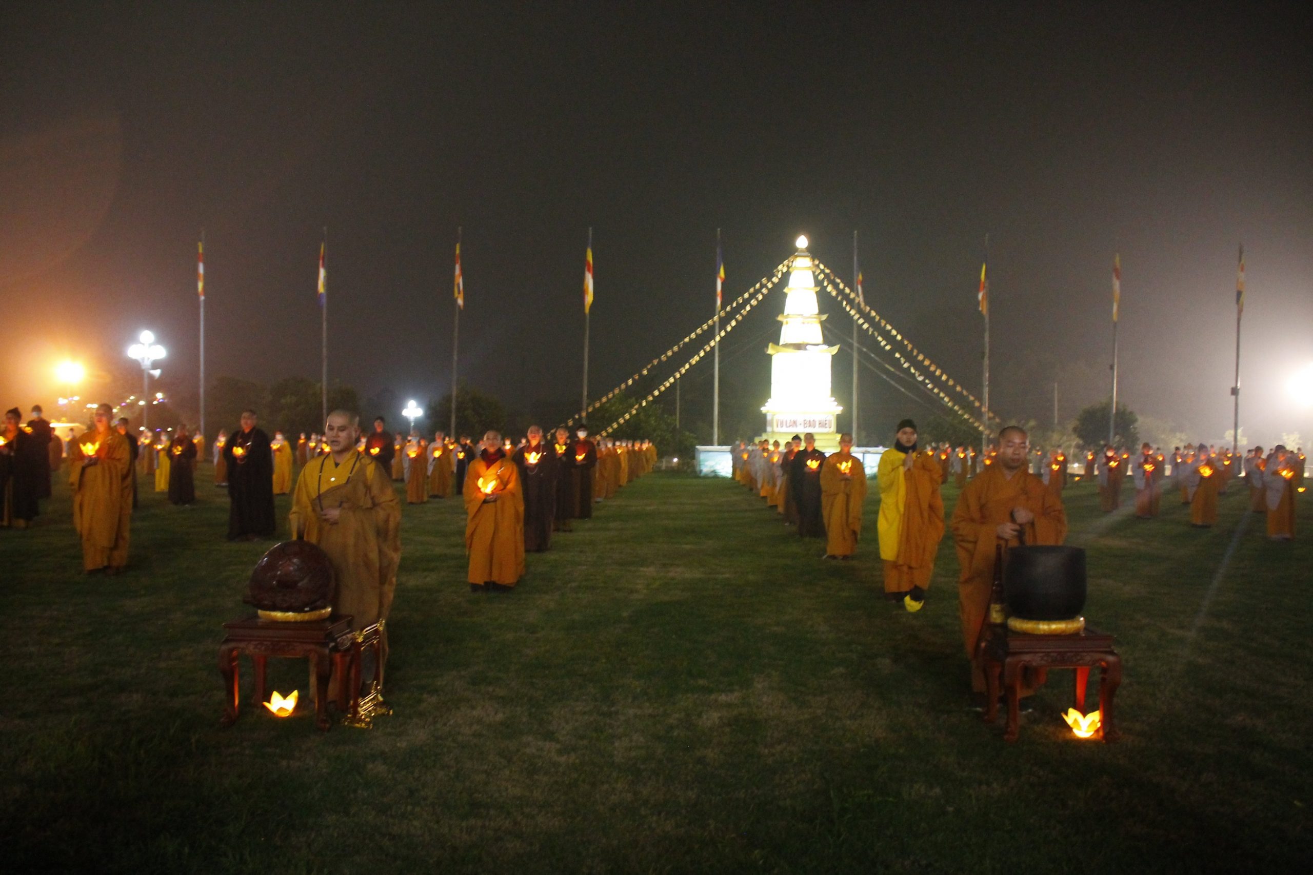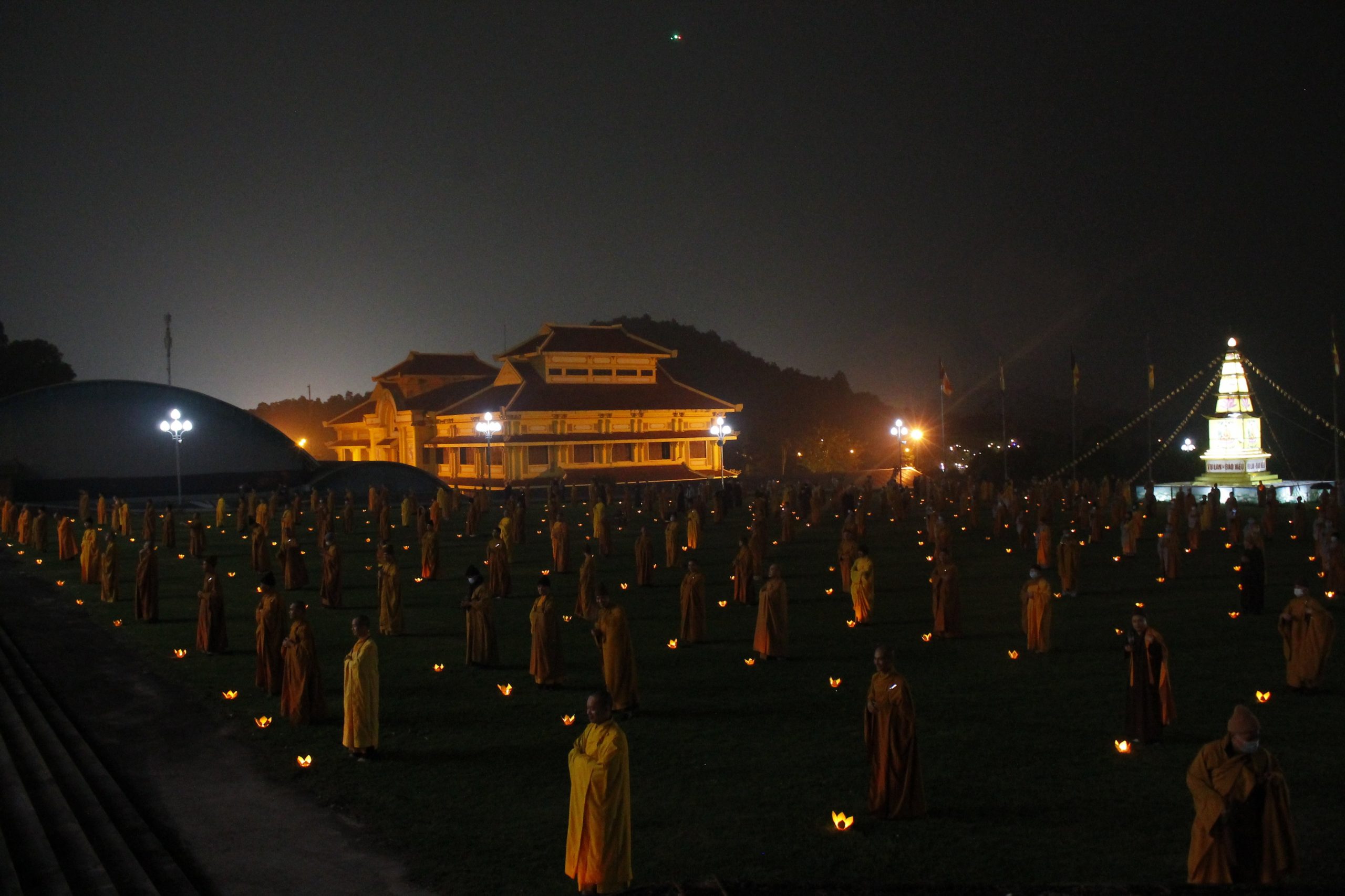 Với hơn 500 Tăng Ni sinh cũng như hàng nghìn ngọn nến được thắp lên, nguyện cầu cho các linh hồn được siêu thoát; dịch Covid-19 sớm được tiêu trừ để nhân loại không phải gánh chịu thêm đau thương mất mát.
