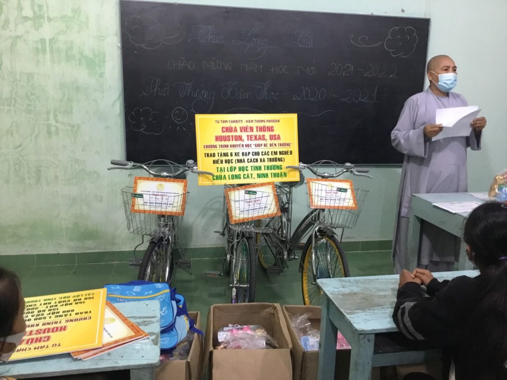 Tham dự có Sư cô Thích Nữ Đức Thịnh – Chủ lớp học, ĐĐ. Thích Đức Toàn, quý thầy cô giáo và hơn 150 học sinh 5 lớp. Năm nay, lớp học tình thương Long Cát khai giảng dưới hình thức nội bộ, phát thưởng từng lớp riêng biệt. Mặc dù, các em không được dự lễ khai giảng như mọi năm, không tiếng trống tựu trường, không văn nghệ, không quần áo mới nhưng em nào cũng phấn khởi vui mừng, vì được đến lớp gặp thầy gặp bạn, được học được chơi.