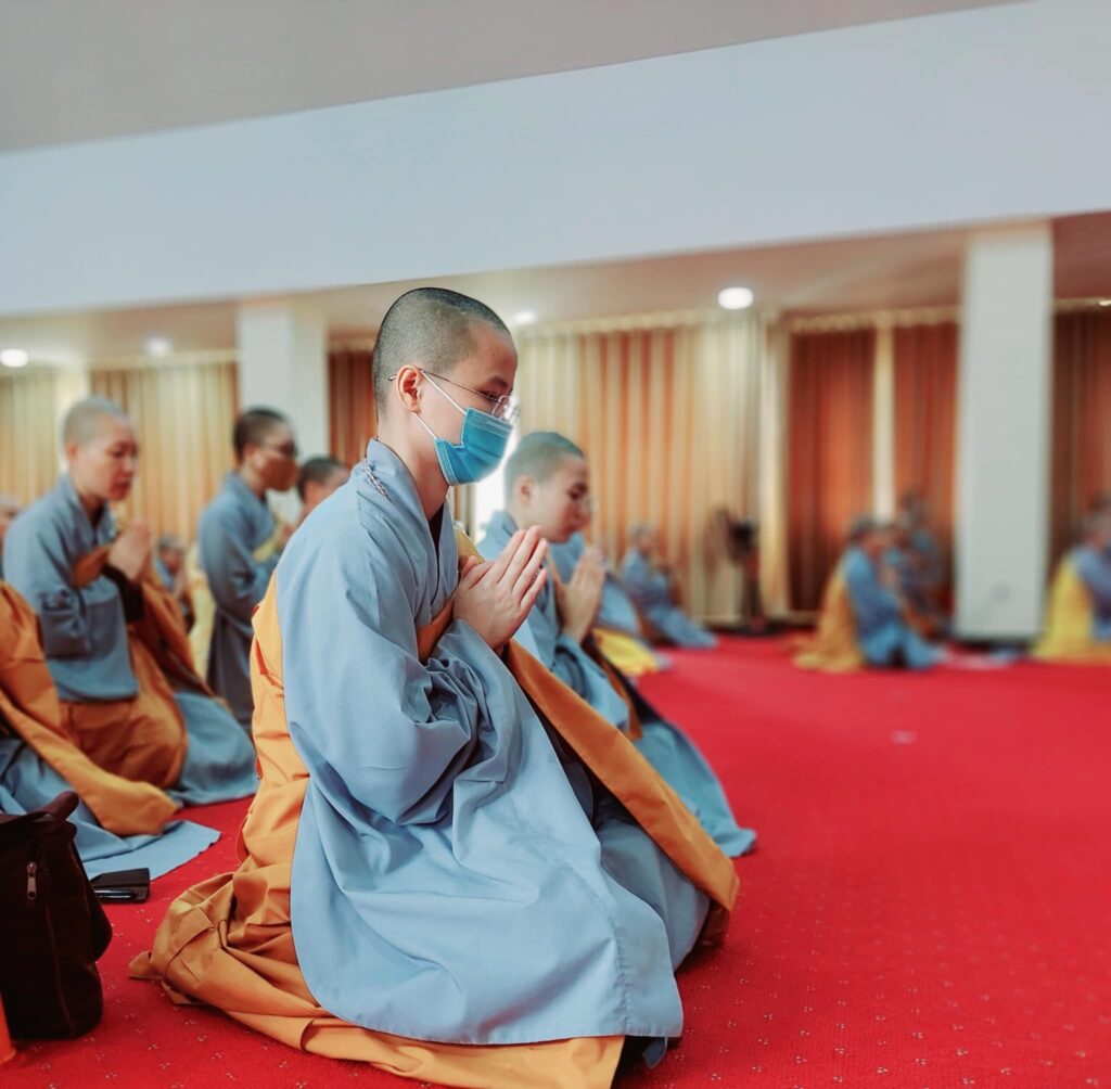 Hàng ngày, lễ tụng kinh Phổ Môn, từ Hạ trường cấm túc an cư chùa Huê Nghiêm, TPHCM do Ban Nghi lễ Giáo hội Phật giáo TP HCM thực hiện.