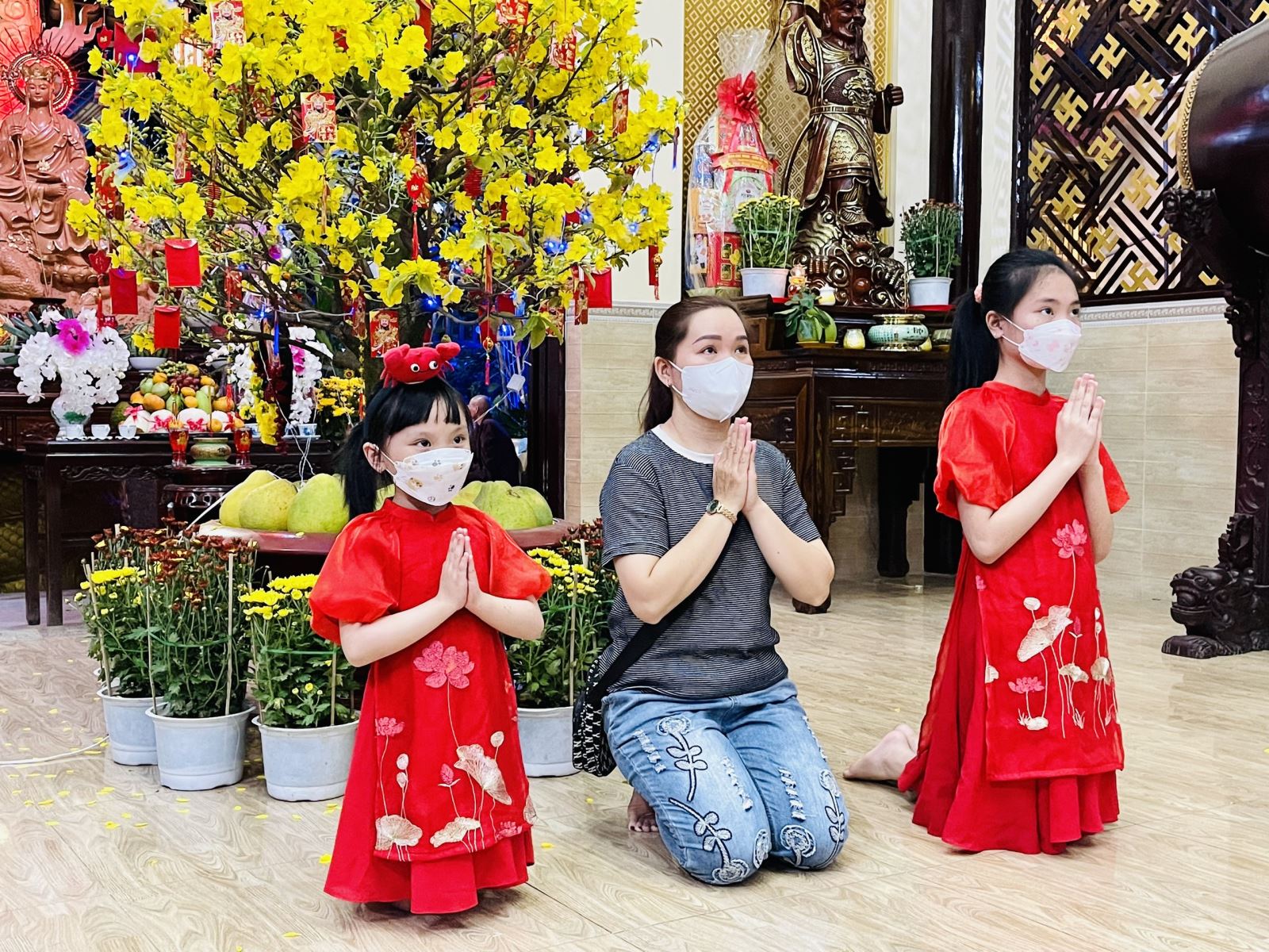 Tại Tu viện Quảng Đức (thành phố Thủ Đức), chùa Viên Giác (quận Tân Bình), chùa Vĩnh Nghiêm (quận 3)… ngay sau thời khắc giao thừa năm Nhâm Dần, đã có nhiều người xuất hành đến chùa cầu bình an trong năm mới.
