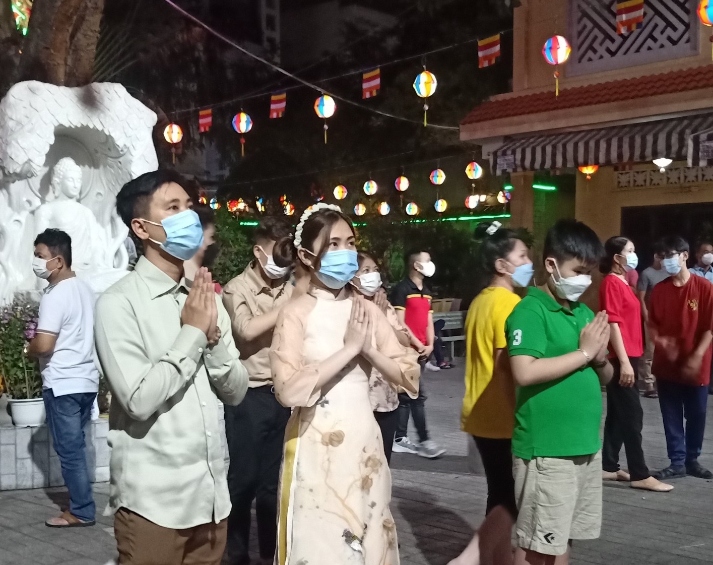 Tại chùa Vĩnh Nghiêm, Quận 3, người dân đi lễ chùa luôn tuân thủ quy định phòng dịch.