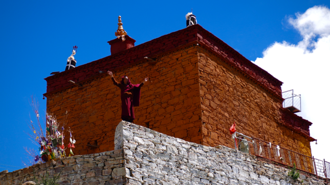 Một trong những nhà sư tu hành tại chùa là Ahwang Pincuo. Hàng ngày, nhà sư gánh nước từ dưới hồ, tụng kinh và thiền định.
