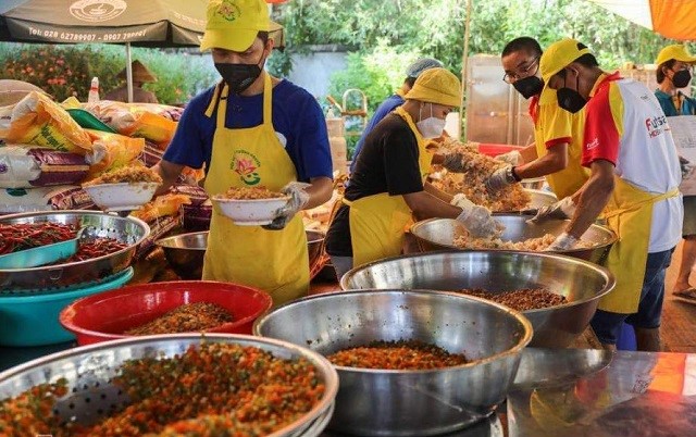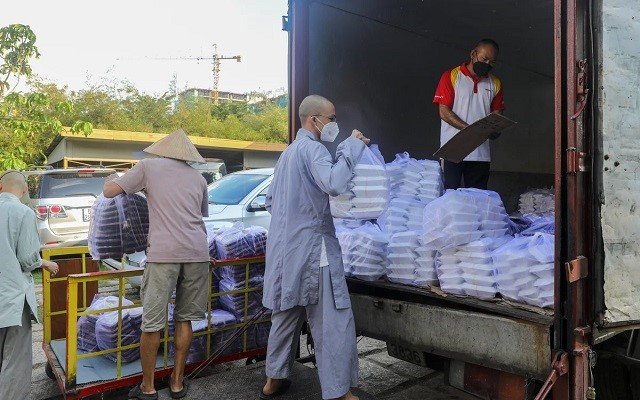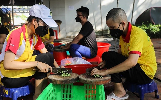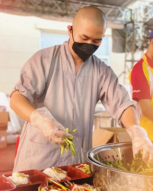Tham gia cùng với các sư trụ trì của ngôi chùa, phật tử là hơn 100 tình nguyện viên gồm nhiều thành phần như giám đốc, nhân viên văn phòng, tài xế, đầu bếp, sinh viên… Tất cả đều chung tay góp sức nấu từng bữa ăn cho các y bác sĩ và bà con nghèo trong đại dịch.