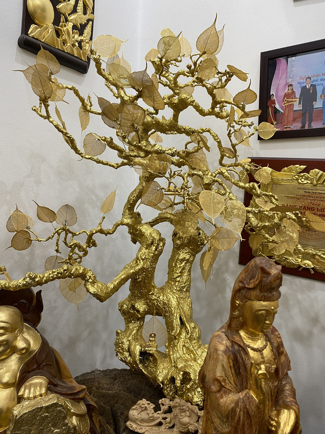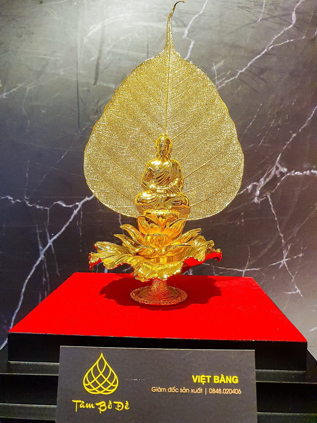 Từ những chiếc lá đề mỏng manh được nhập về từ một số nước trên thế giới, qua bàn tay tài hoa của nghệ nhân Nguyễn Đức Bằng đã khéo léo mạ vàng 24k và thổi hồn thành những tác phẩm nghệ thuật phong thủy trường tồn với thời gian.