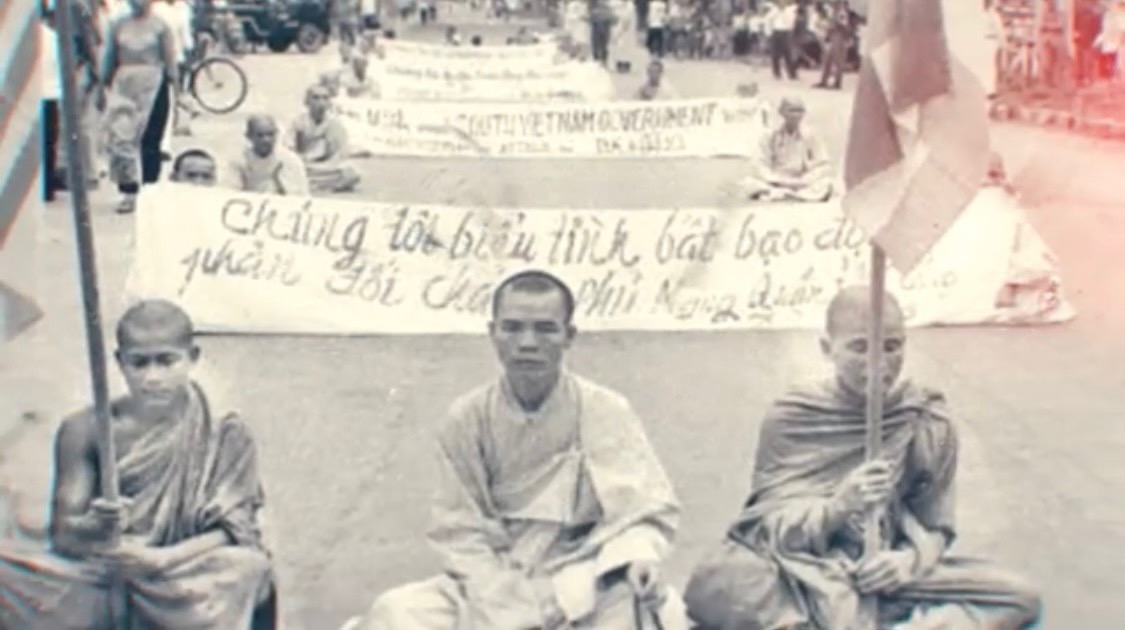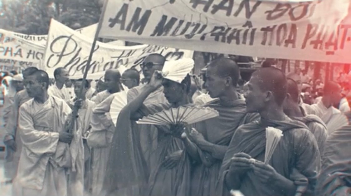 Trong kháng chiến chống Mỹ cứu nước, đế quốc Mỹ thi hành những chính sách cấm đoán, bóp nghẹt tôn giáo, làm cho đồng bào Phật giáo vô cùng căm phẫn. Đỉnh cao là sự kiện phản đối chính quyền Ngô Đình Diệm cấm treo cờ Phật giáo thế giới vào dịp Lễ Phật đản năm 1963. Ngày 11-6-1963, Hòa thượng Thích Quảng Đức tự thiêu tại Sài Gòn với hạnh nguyện:“Khói thơm cảnh tỉnh bao người ác/ Tro trắng phẳng san hố bất bình”( Kệ thiêu thân cúng dường Chánh pháp của Hòa thượng Thích Quảng Đức viết trước lúc tự thiêu).