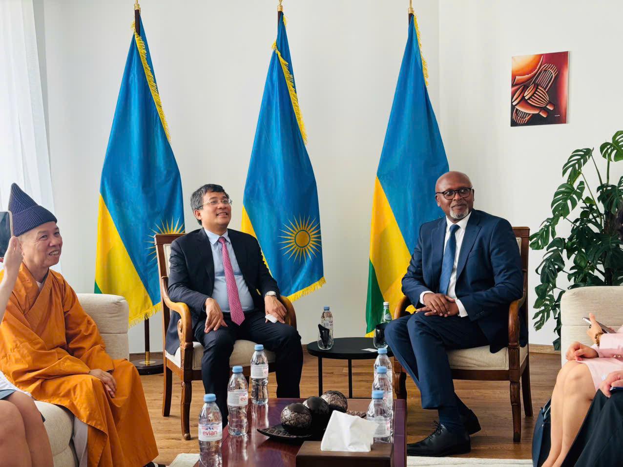 Tiếp tục chương trình làm việc ngày 14/6/2025 tại Pháp, Hoà thượng Viện trưởng Thích Thanh Quyết cùng phái đoàn Bộ Ngoại giao và Lãnh đạo tỉnh Quảng Ninh có buổi làm việc với Đại sứ Rwanda, Đại biện Senegal.