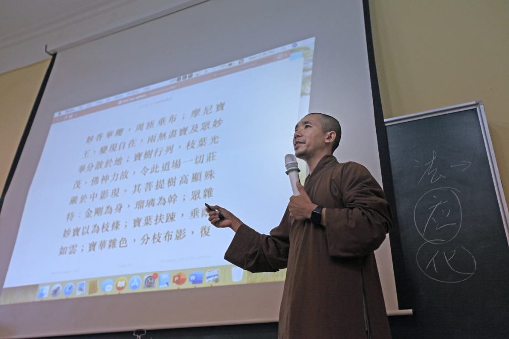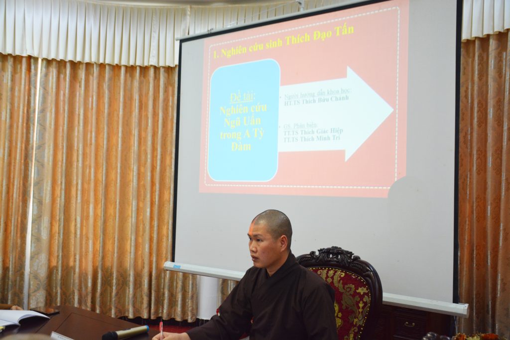 Học viên sử dụng công nghệ để trình bày đề tài nghiên cứu tại Học viện Phật giáo Việt Nam tại Hà Nội