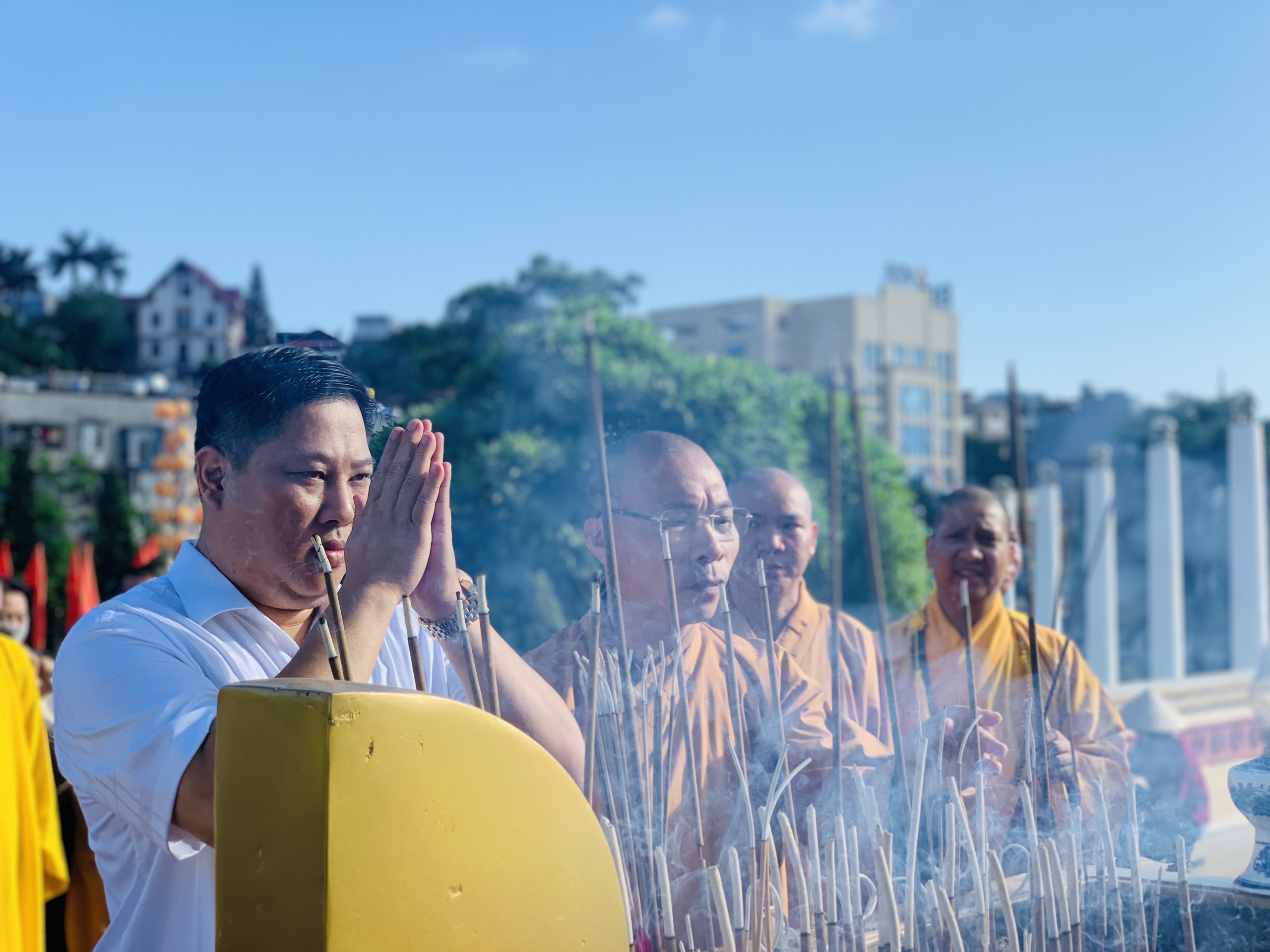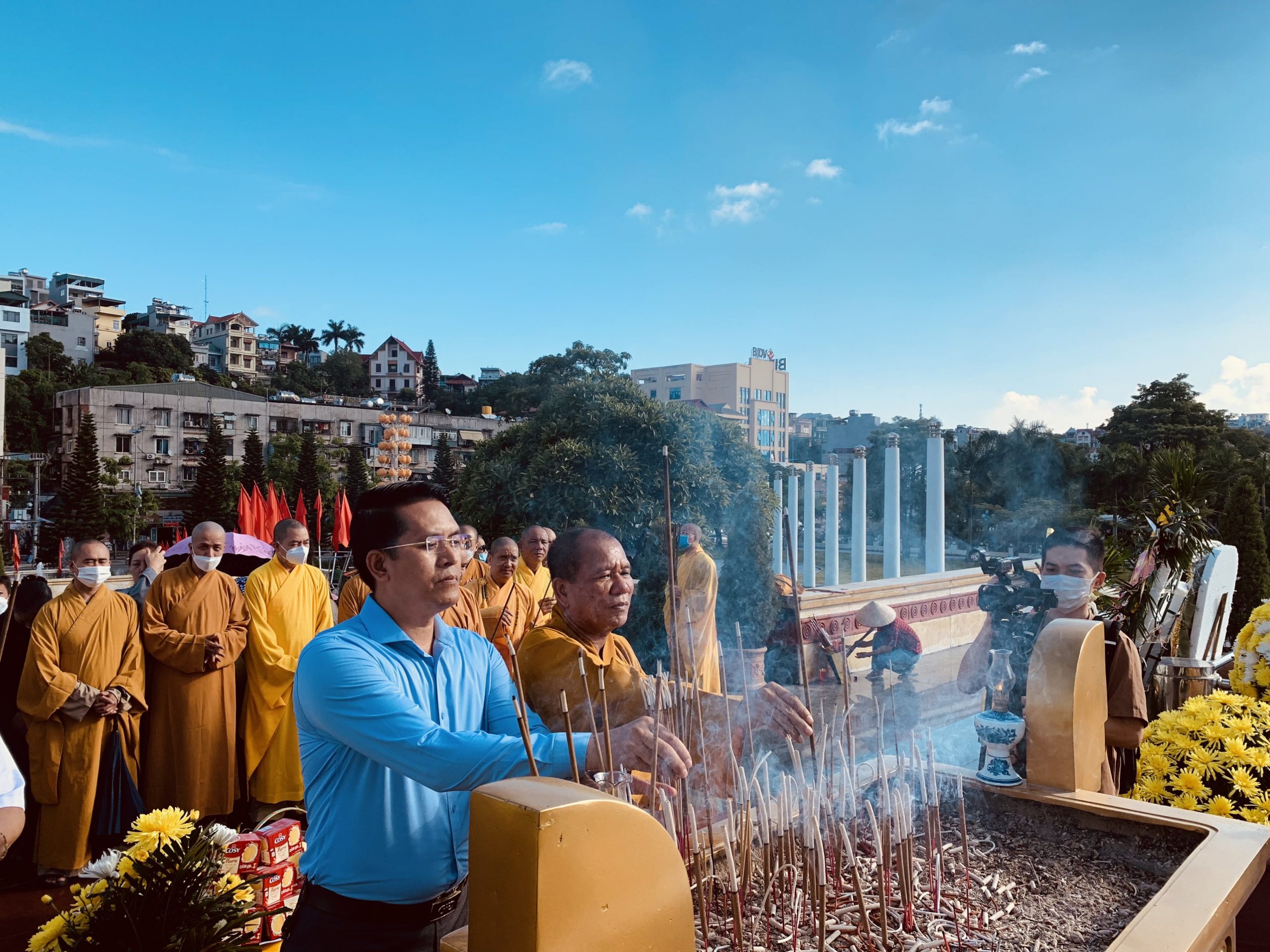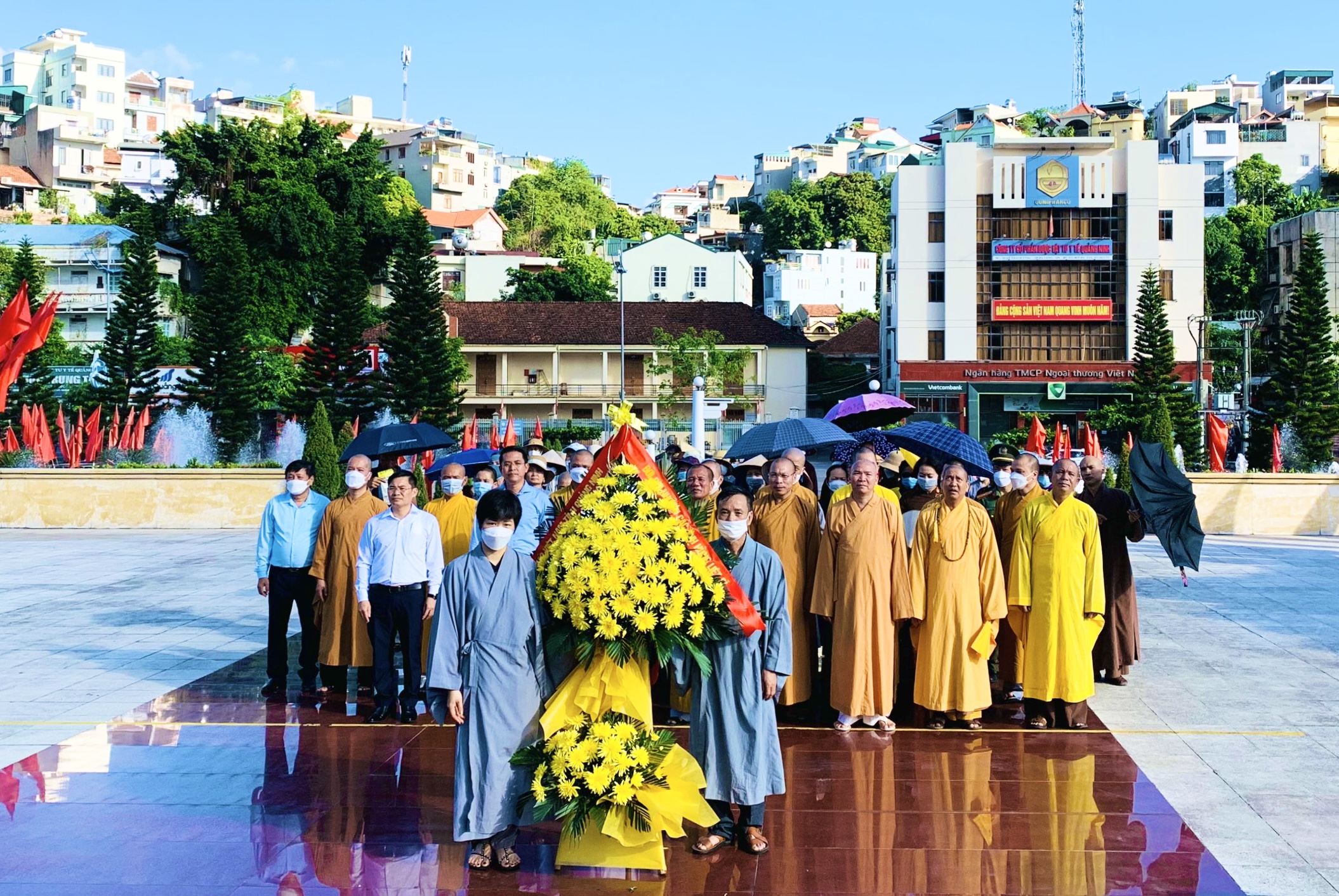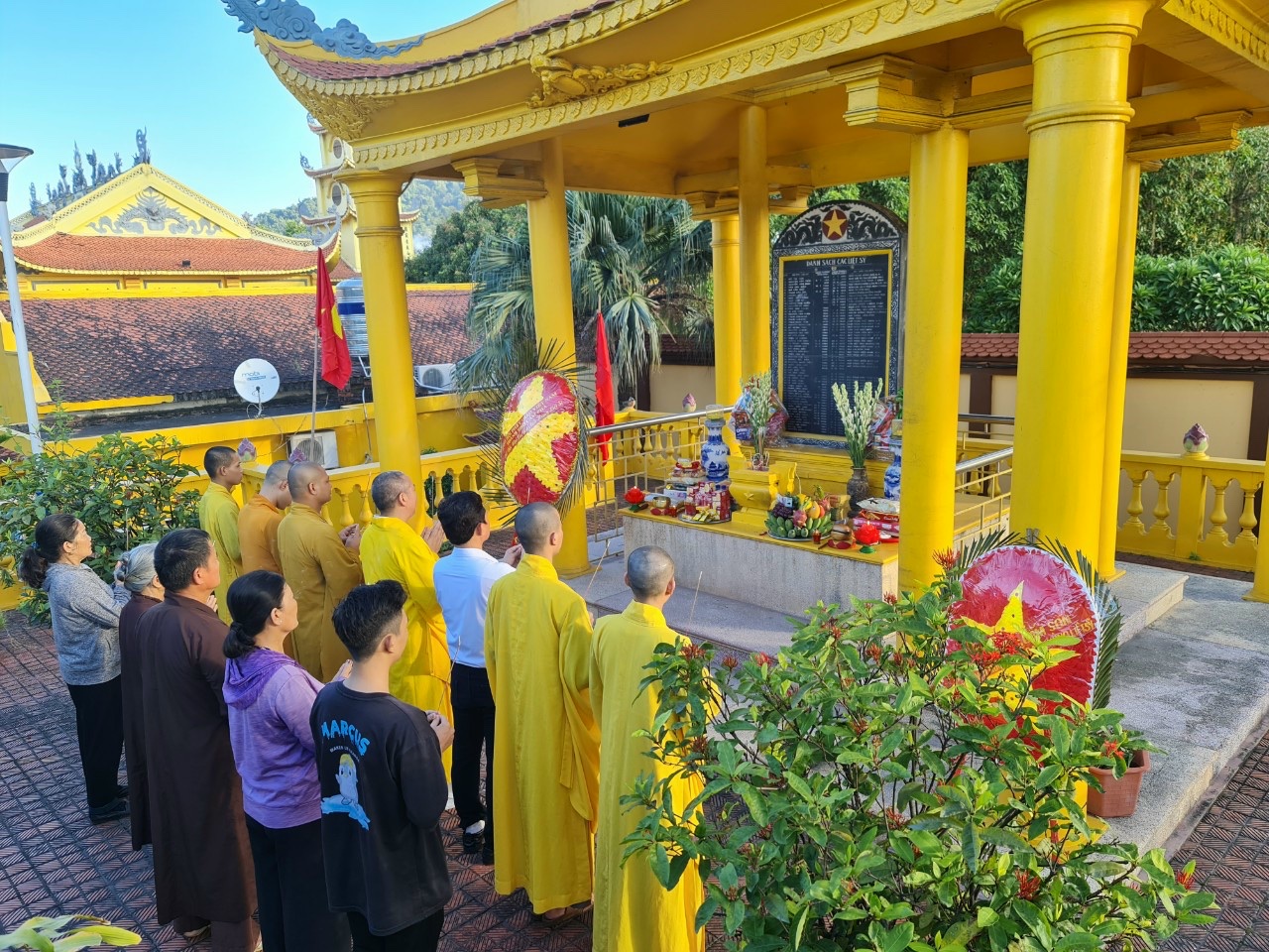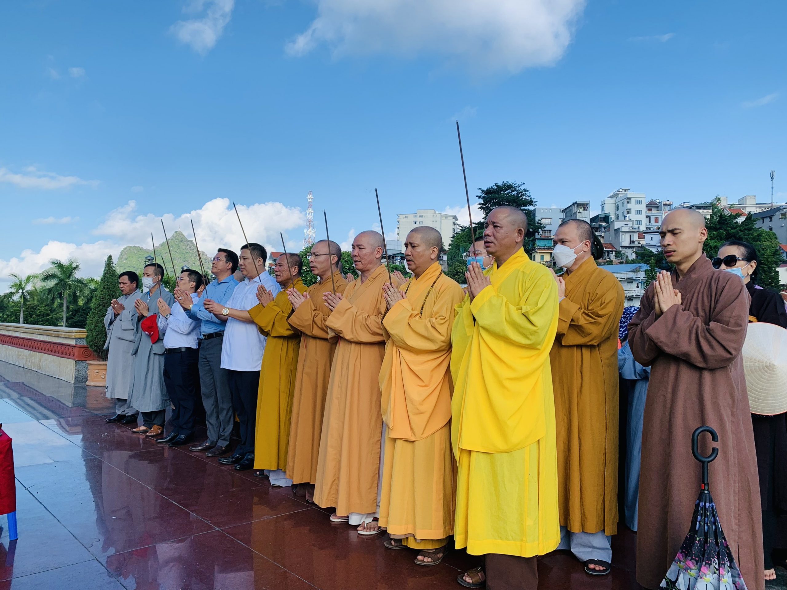 Tại TP. Hạ Long, Chư tôn đức Thường trực Ban Trị sự GHPGVN tỉnh Quảng Ninh, Ban Trị sự GHPGVN TP. Hạ Long dâng hương tưởng niệm liệt sĩ tại Đài tưởng niệm anh hùng liệt sĩ tỉnh Quảng Ninh và tượng đài anh hùng Liệt sĩ Vũ Văn Hiếu.