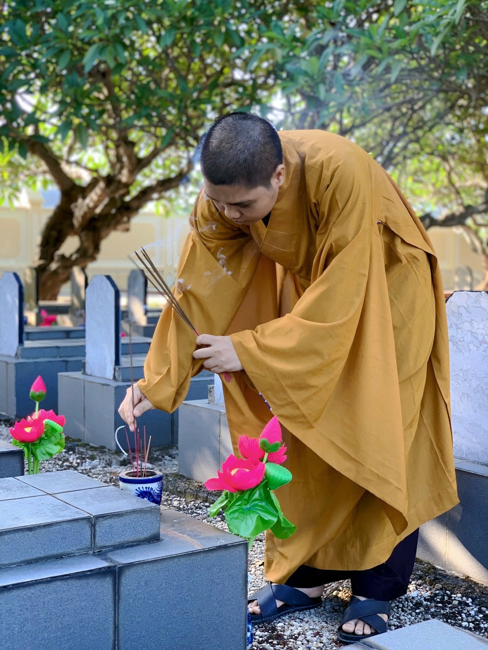Ban Trị sự GHPGVN thành phố Uông Bí dâng hương, tụng kinh kì siêu tại nghĩa trang TP. Uông Bí