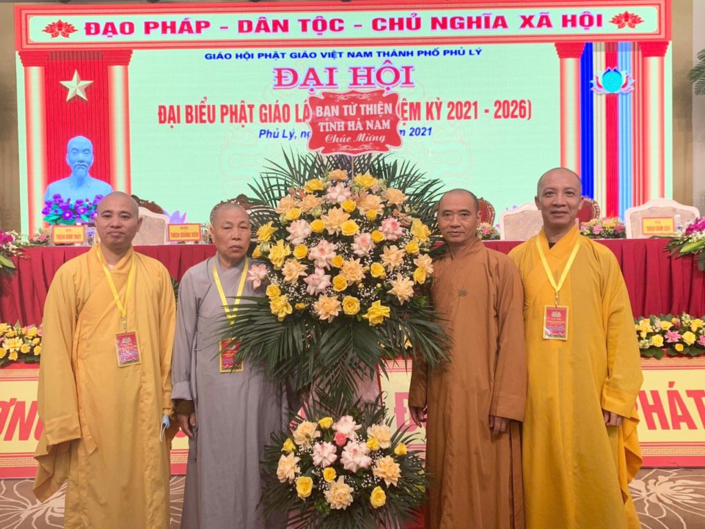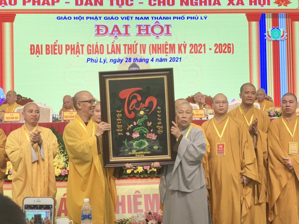 Sáng nay, ngày 28/4, Ban Trị sự (BTS) TP Phủ Lý long trọng tổ chức Đại hội Đại biểu Phật giáo TP Phủ Lý lần thứ IV nhiệm kỳ 2021-2026, tại Hội trường Khách sạn Vinpearl Hà Nam. Đại hội đã trao 100 triệu đồng cho bộ đội biên phòng tuyến biên giới để phòng chống covid 19 và 30 triệu đồng ủng hộ xây nhà đại đoàn két.