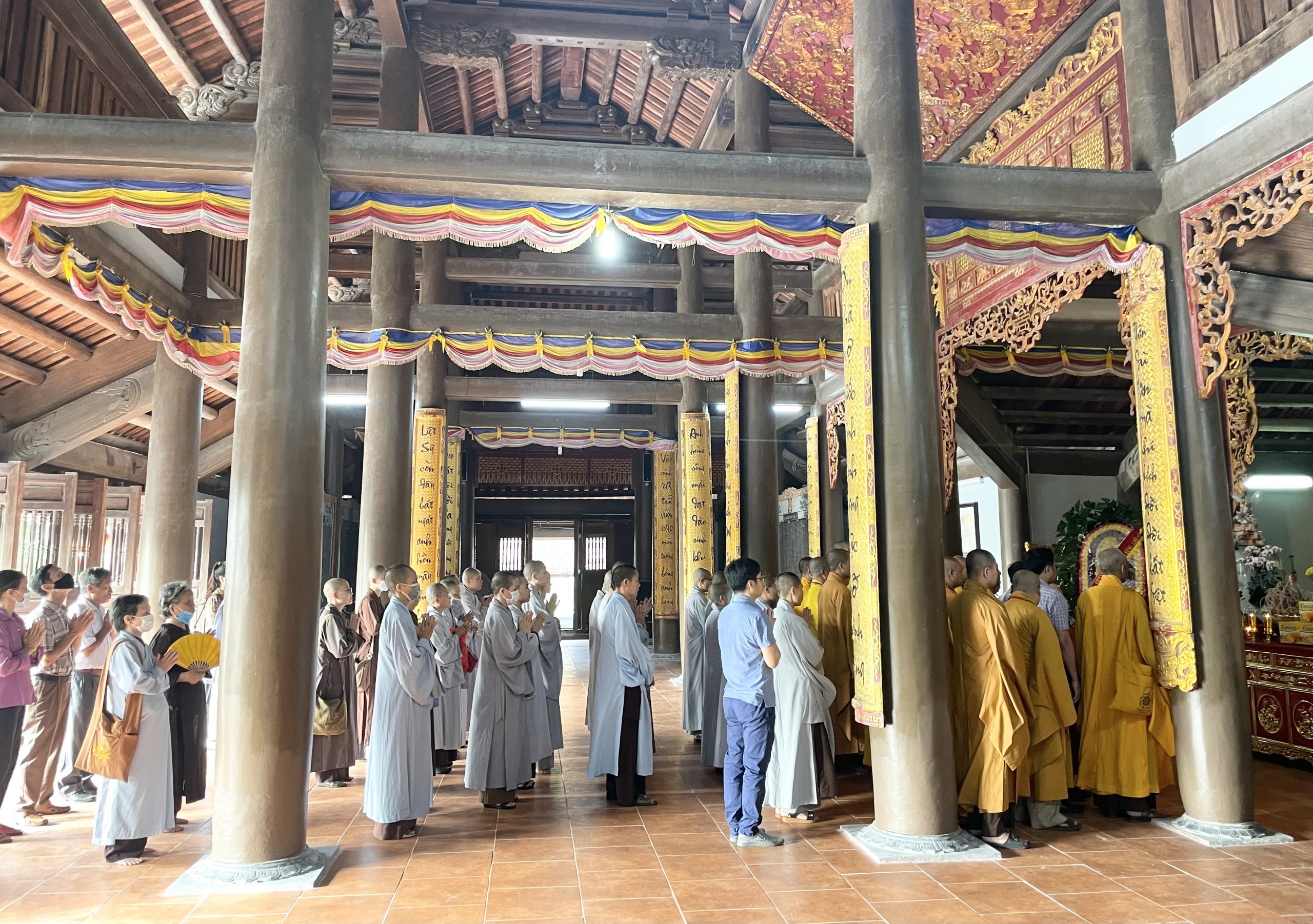 Tham dự chứng minh có: Hòa thượng Thích Thanh Quyết- Phó Chủ tịch Hội đồng Trị sự TW, Trưởng ban Trị sự Phật giáo tỉnh Hà Nam; Thượng Toạ Thích Thiện Hưởng- Uỷ viên Hội đồng Trị sự, Phó Trưởng Ban Thường trực Phật giáo tỉnh Hà Nam; cùng Chư tôn đức Phó trưởng ban, Tăng, Ni trong Ban Trị sự các huyện, thị xã, thành phố, cùng chư hành giả đang an cư tại chùa Bầu đồng tham dự lễ.