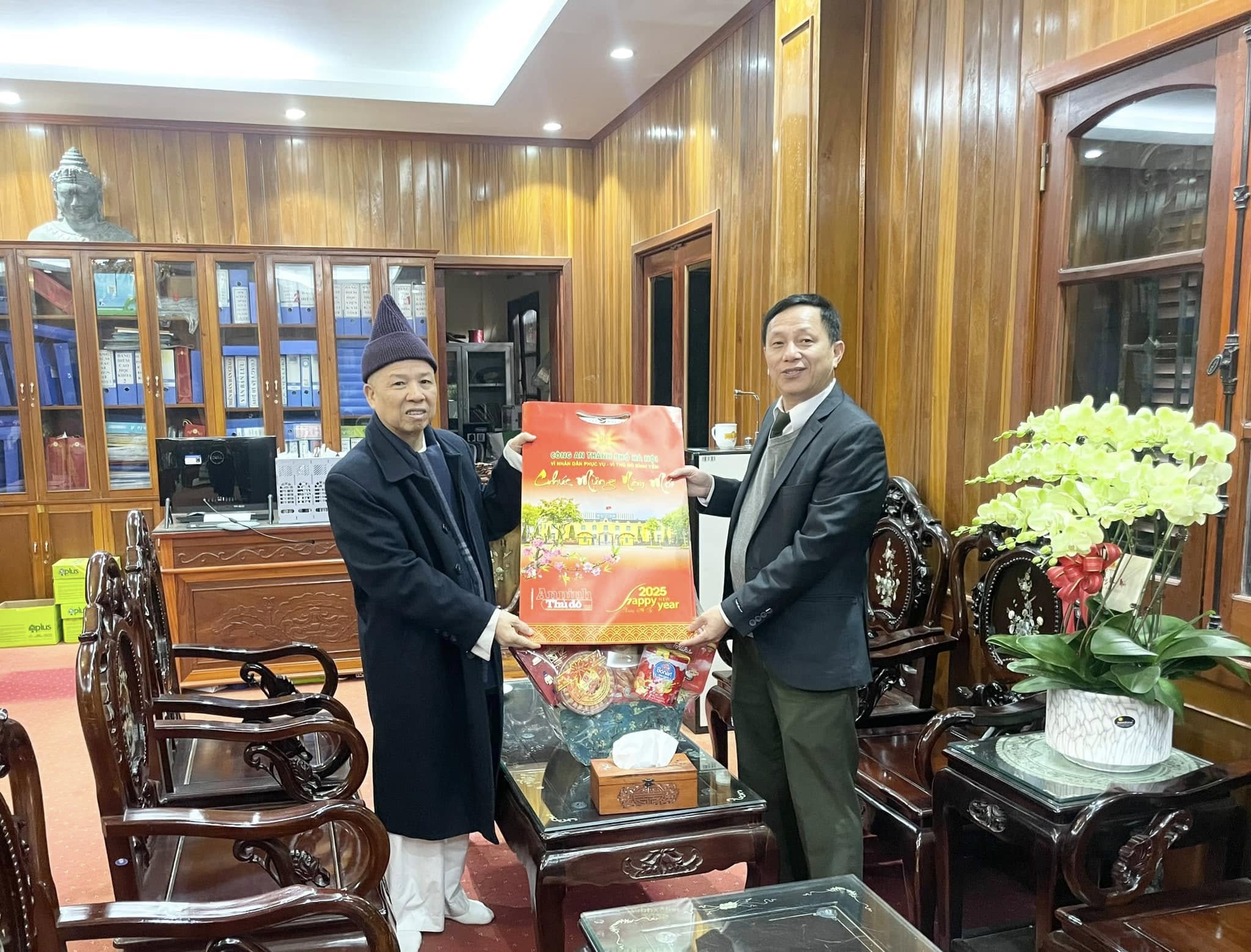 Sáng ngày 18/01/2025 đoàn cán bộ phòng An ninh nội địa – Công An Tp Hà Nội do Đại tá Ngô Chí Dược – Trưởng phòng An ninh Nội địa, Công an Hà Nội làm trưởng đoàn đến thăm và chúc Tết Hoà thượng Thích Thanh Quyết cùng chư Tôn đức Hội đồng Học viện.