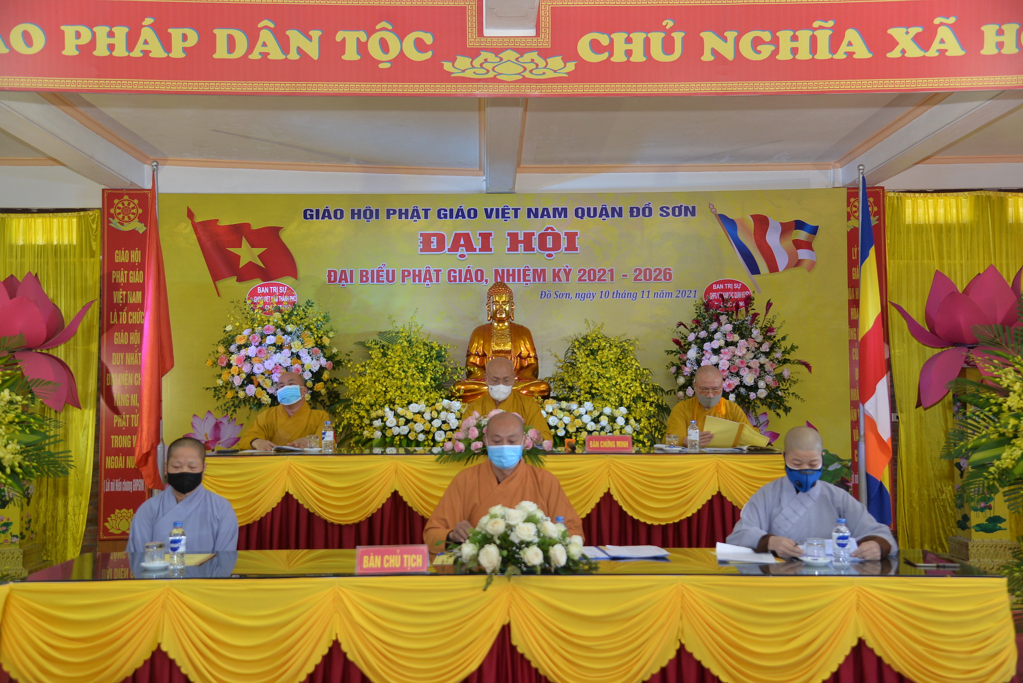 Đại hội đã lấy biểu quyết thông qua Dự thảo Báo cáo tổng kết công tác Phật sự nhiệm kỳ 2016 – 2021 và phương hướng hoạt động nhiệm kỳ 2021 – 2026. Đồng thời, thông qua danh sách thành phần nhân sự của Ban trị sự GHPGVN quận Đồ Sơn nhiệm kỳ 2021 – 2026. Đại biểu đã biểu quyết suy cử 5 thành viên tân Ban trị sự GHPGVN quận Đồ Sơn, Đại đức Thích Tục Minh tiếp tục giữ chức vụ Trưởng Ban trị sự.