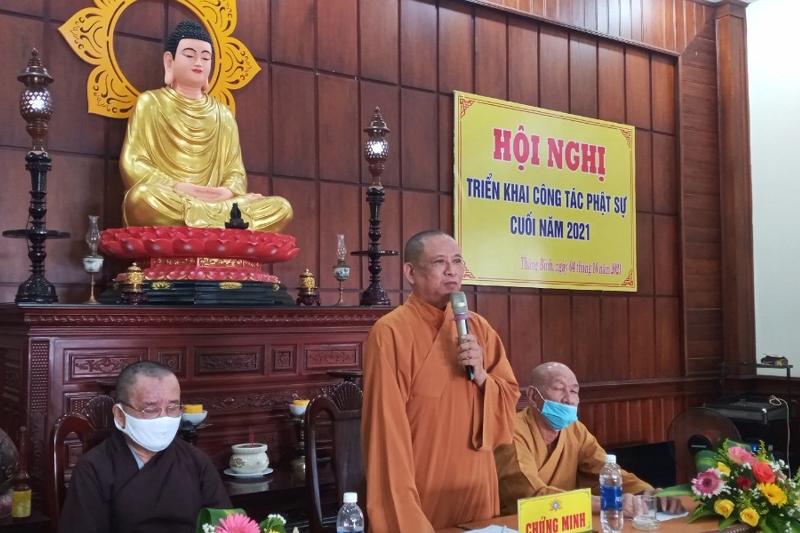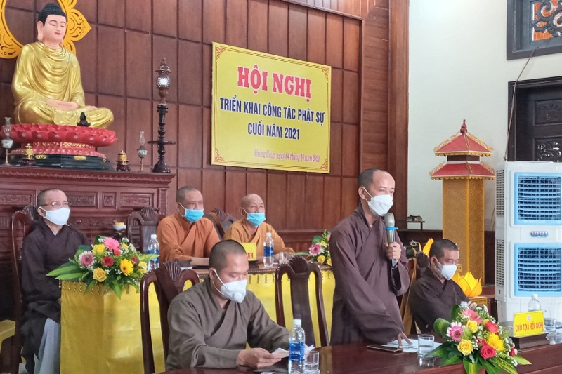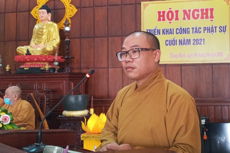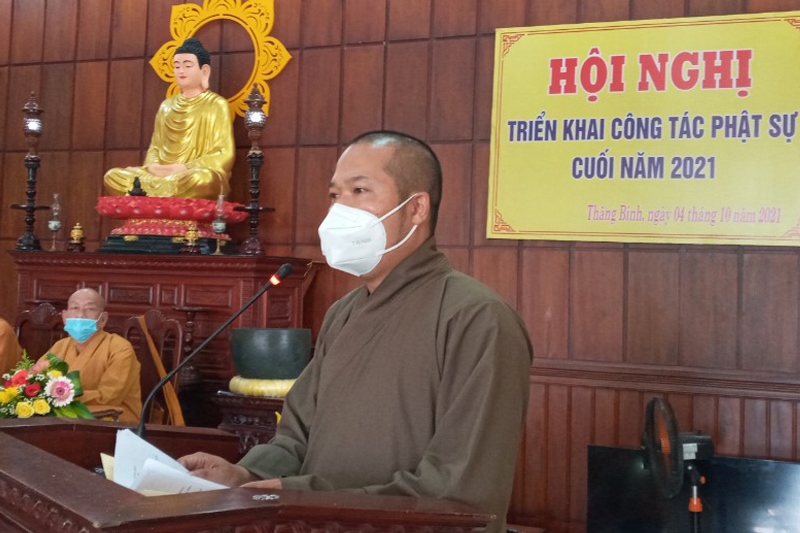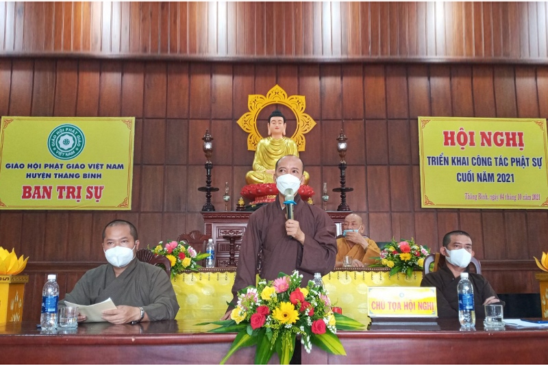 Phát biểu khai mạc Hội nghị, ĐĐ.Thích Tánh Thông, Trưởng ban Trị sự GHPGVN huyện Thăng Bình cho biết, do diễn biến phức tạp của đại dịch Covid-19, 6 tháng đầu năm 2021 không có nhiều hoạt động tu học, nhưng trên tinh thần chung tay phòng chống dịch cùng với toàn xã hội, Ban Từ thiện Xã hội Phật giáo huyện và các cơ sở tự viện đã tích cực thực hiện các hoạt động giúp đỡ bà con vùng dịch với tổng số tiền gần 1,9 tỷ đồng.