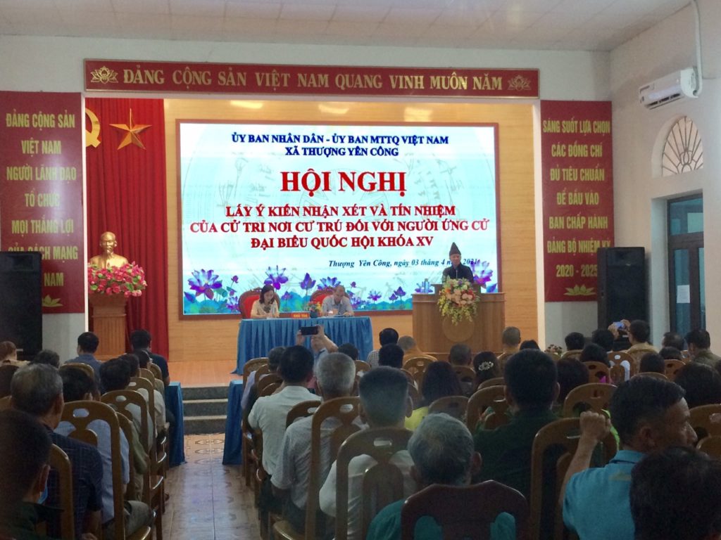 Chiều ngày 3 tháng 4 năm 2021, tại hội trường Uỷ ban nhân dân xã Thượng Yên Công, Thành phố Uông Bí, diễn ra Hội nghị lấy ý kiến nhận xét và tín nhiệm của cử tri nơi cư trú đối với người ứng cử đại biểu Quốc hội khóa XV, nhiệm kỳ 2021-2026