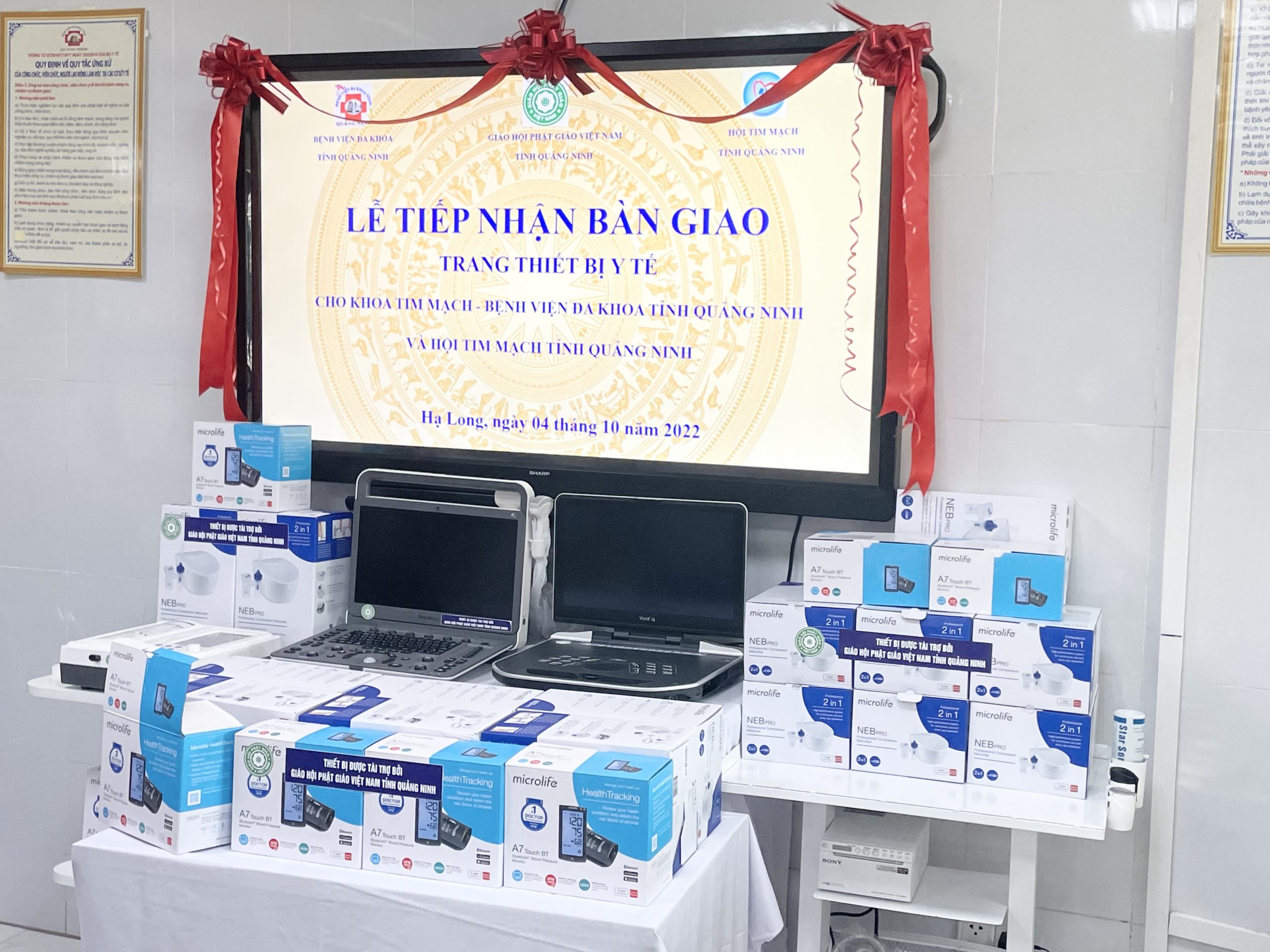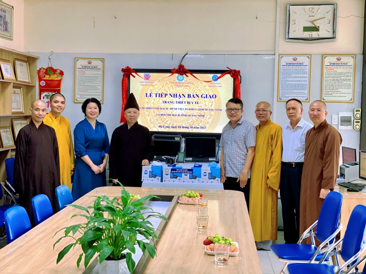 Sau lễ trao bàn giao trang thiết bị tại Chùa Long Tiên, Ban Trị sự đã trực tiếp đến Bệnh viện Đa khoa tỉnh Quảng Ninh để kiểm tra trang thiết bị máy móc.