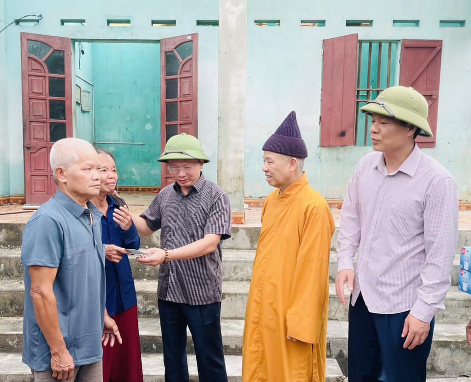 Hoà thượng Thích Thanh Quyết đã ân cần thăm hỏi các cụ già và gia đình thiệt hại nặng nề tại xã Thượng Yên Công Tp. Uông Bí.