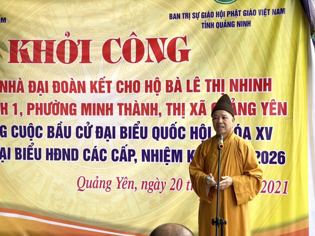 Tại lễ khởi công, Hòa thượng Thích Thanh Quyết – Phó Chủ tịch Hội đồng Trị sự, Trưởng ban Trị sự GHPGVN tỉnh Quảng Ninh đã trao hỗ trợ đến mỗi gia đình 50 triệu đồng chi phí xây dựng nhà, đồng thời động viên gia đình, sau khi công trình hoàn thành, sẽ tiếp tục ủng hộ một số vật dụng thiết yếu cho đời sống sinh hoạt như tủ lạnh, tivi, quạt…