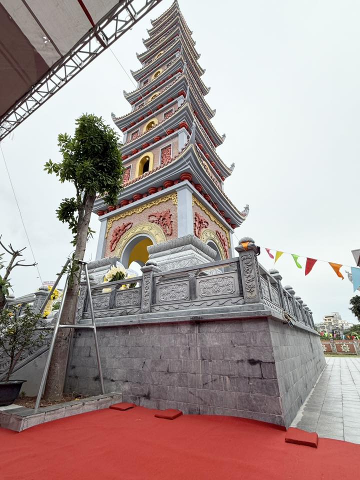 Bảo tháp được xây dựng bằng nguồn vốn xã hội hoá, xây dựng theo kiểu truyền thống với chất liệu bằng đá và gạch truyền thống của Việt Nam.