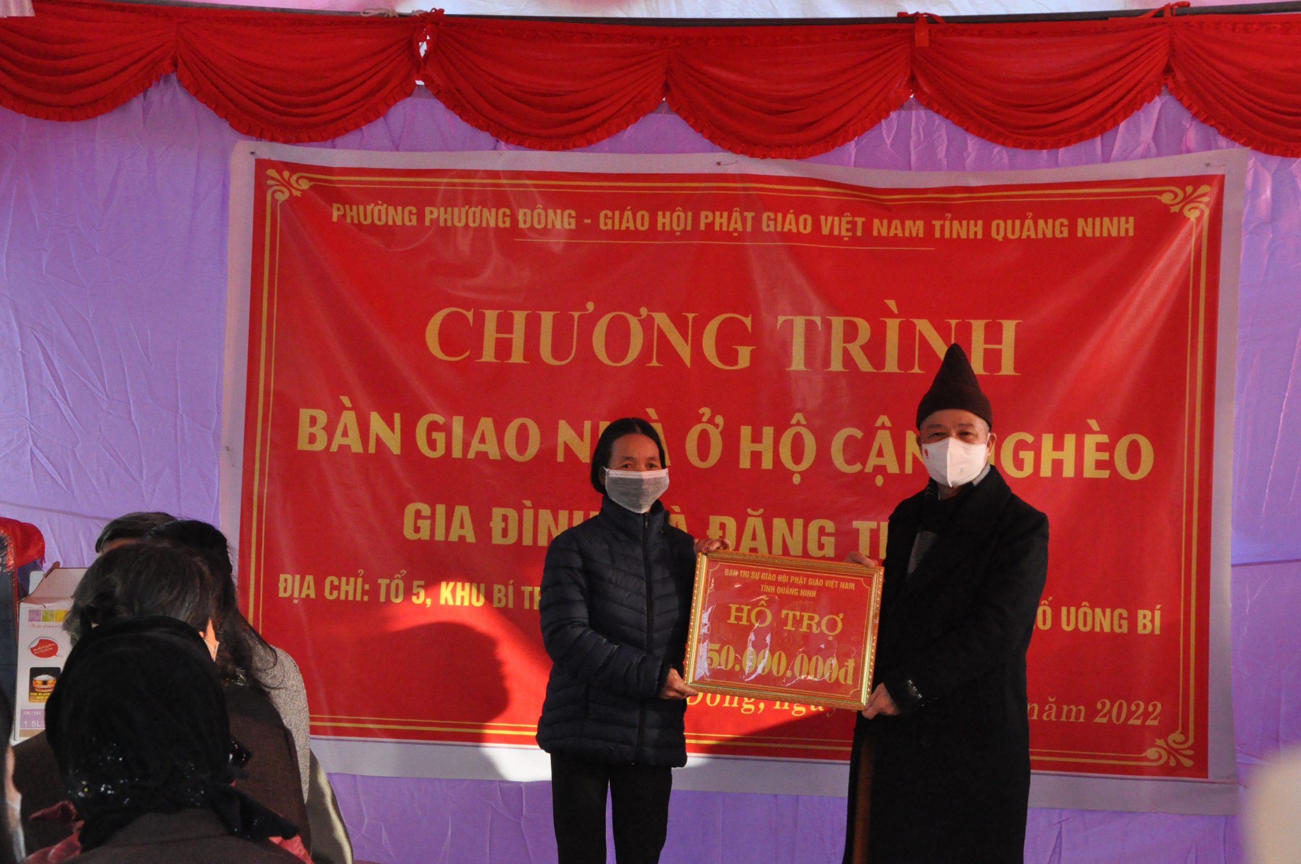 Sáng nay, Ban Trị sự Phật giáo tỉnh Quảng Ninh tổ chức khánh thành và trao nhà tình nghĩa vào buổi sáng cho bà Đặng Thị Mai, thuộc hộ nghèo tại phường Phương Đông, TP Uông Bí.