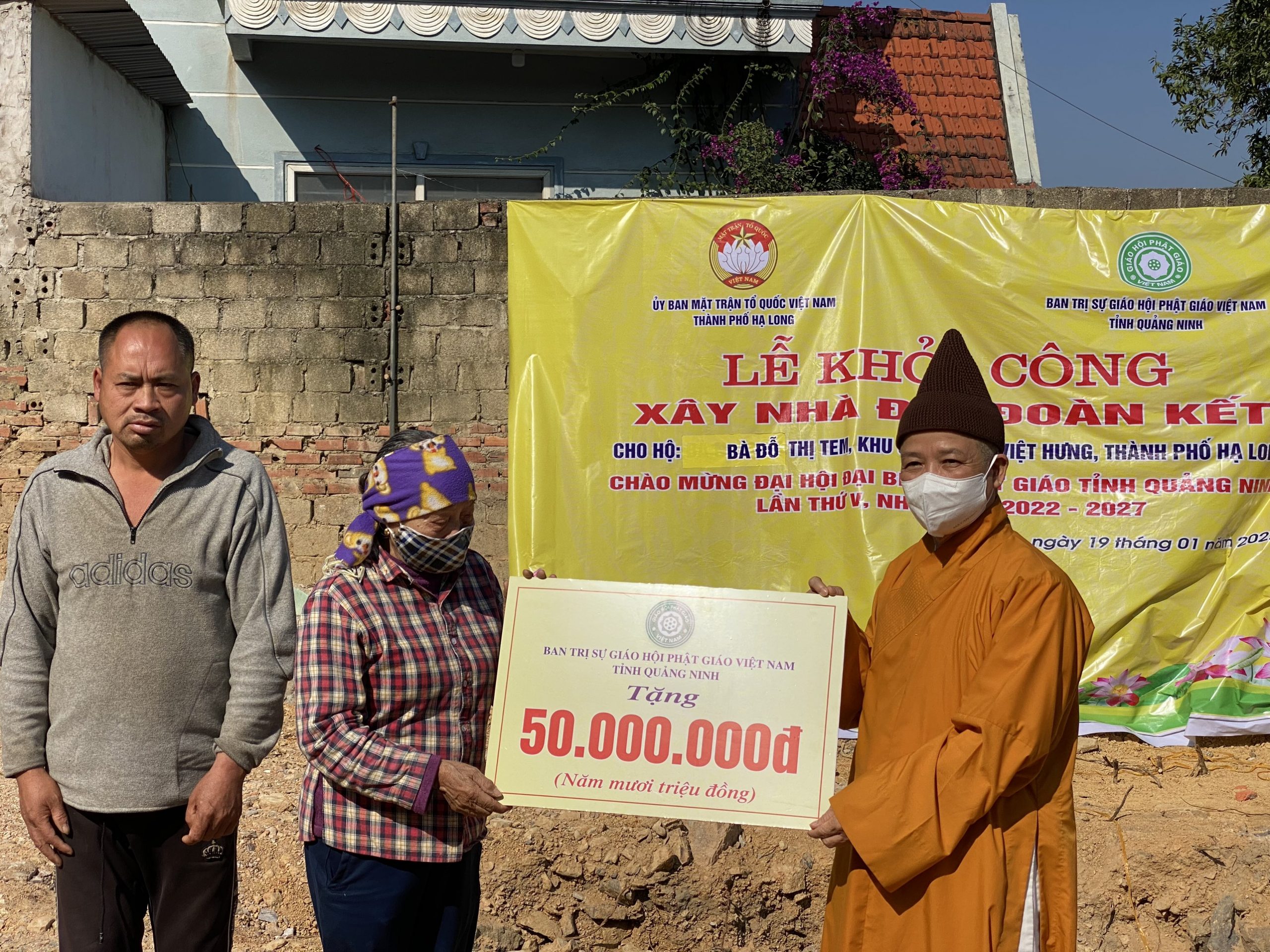 Đây là các gia đình trong diện hộ nghèo và cận nghèo trên địa bàn, với hoàn cảnh khó khăn. Hòa thượng Thích Thanh Quyết đại diện Ban Trị sự trao số tiền mặt 50 triệu đồng cho mỗi gia đình cùng hứa sau khi hoàn thành sẽ tặng thêm mỗi hộ 01 chiếc Tivi, 01 Tủ lạnh. Đây là những hoạt động thường xuyên của Ban Trị sự tỉnh trong nhiều năm qua, thể hiện tinh thần tôn giáo luôn đồng hành cùng dân tộc.