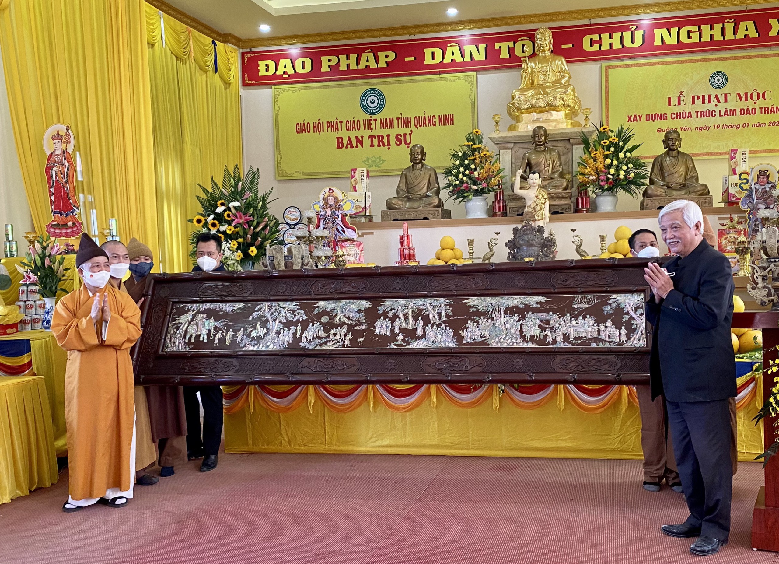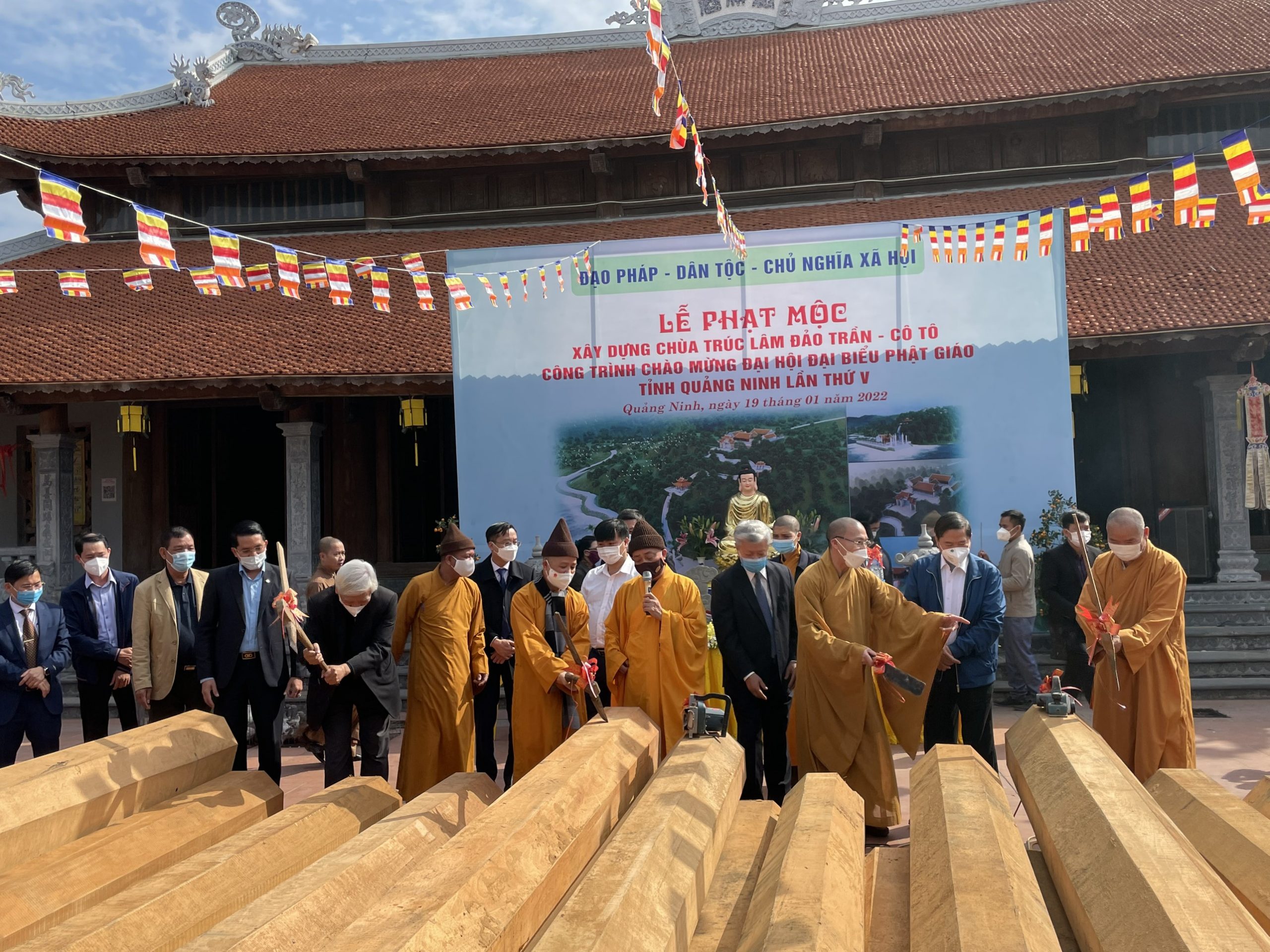 Cũng trong sáng nay, Hoà thượng Thích Thanh Quyết – Phó Chủ tịch Hội đồng Trị sự Trung ương, Trưởng ban Trị sự Phật giáo tỉnh Quảng Ninh cùng Chư tôn đức trong Ban Thường trực Phật giáo tỉnh, các vị đại diện Mặt trận, Dân Vận, Tôn giáo tỉnh và các nhà Khoa học, sử học cũng về tham dự buổi lễ Phạt Mộc chùa Trúc Lâm Đảo Trần.