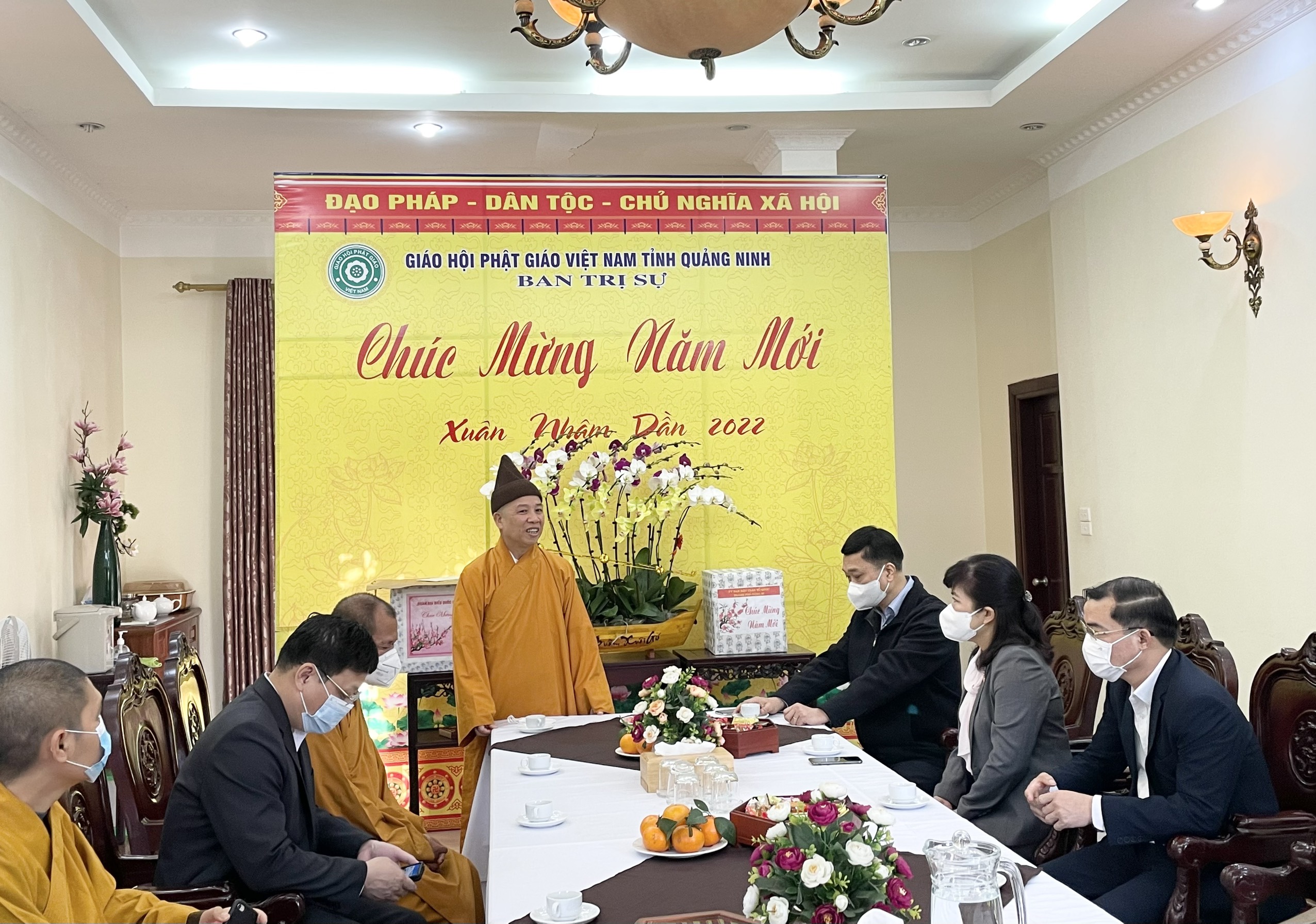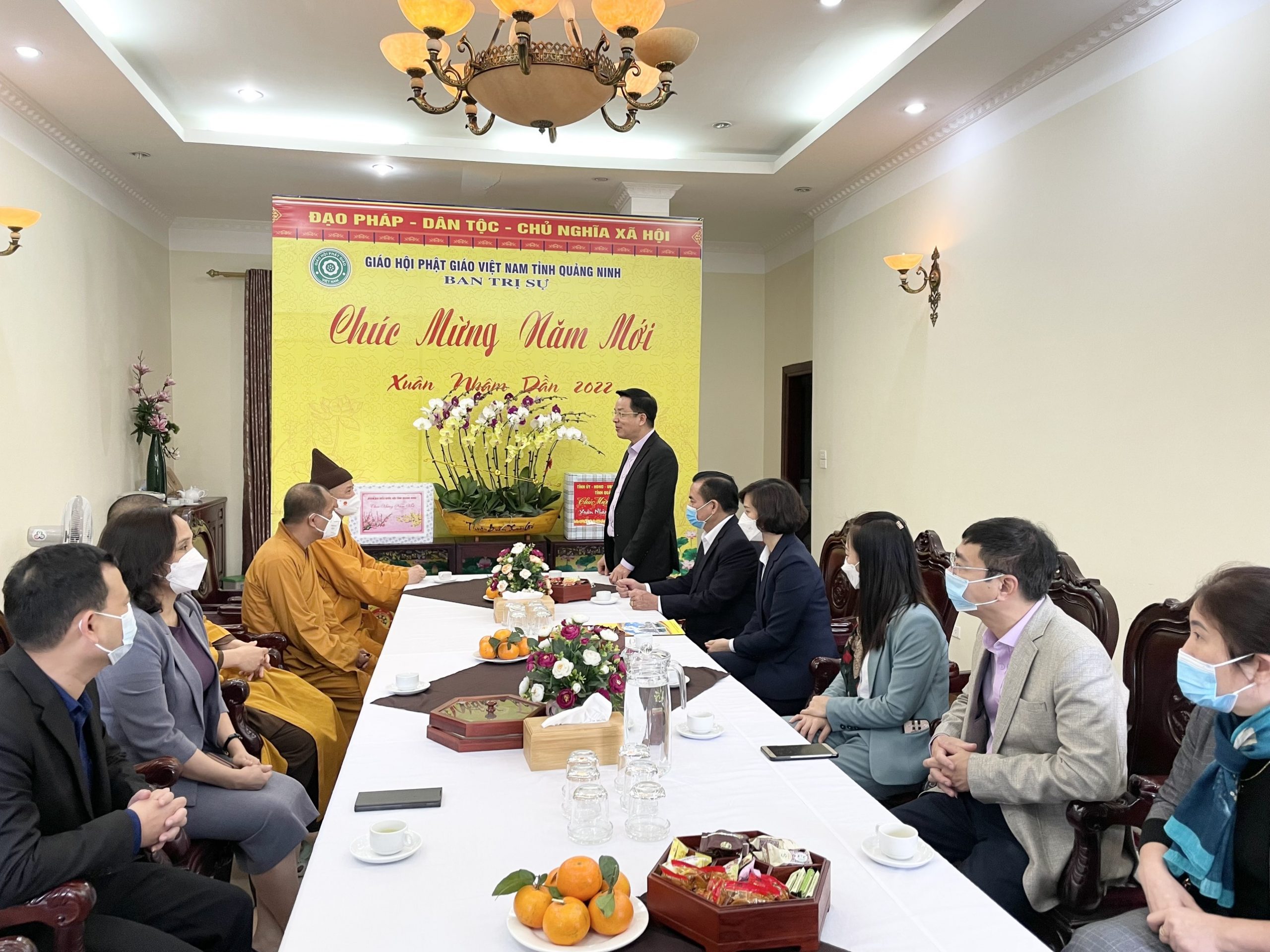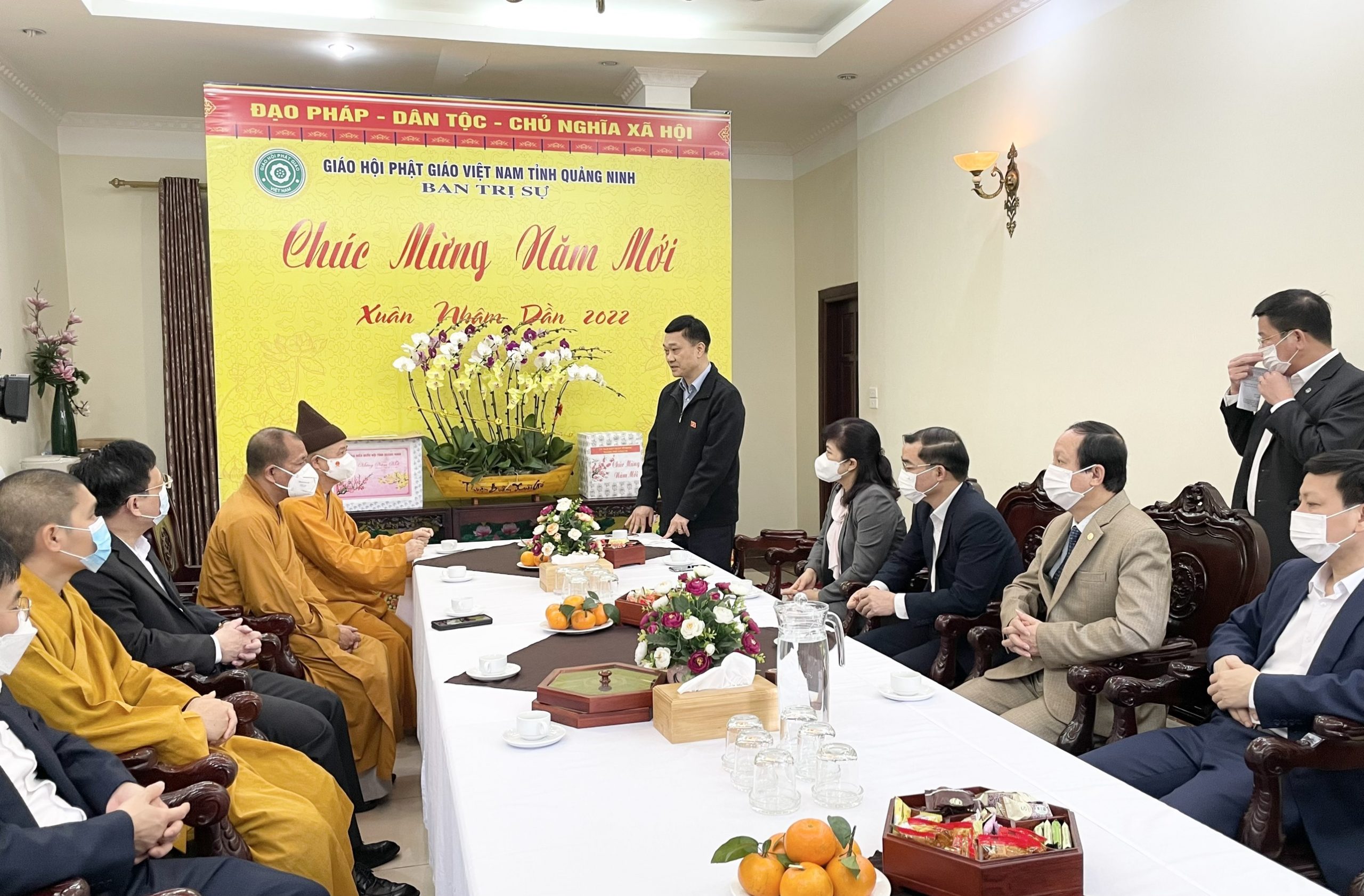 Trưởng phái đoàn Quốc hội đến chúc tết Ban Trị sự là ông Vũ Hồng Thanh – Ủy viên Trung ương Đảng, Ủy viên Ủy ban Thường vụ Quốc hội, Chủ nhiệm Ủy ban Kinh tế của Quốc hội; bà Nguyễn Thị Thu Hà – Tỉnh uỷ viên, Phó Trưởng đoàn Quốc hội tỉnh Quảng Ninh.