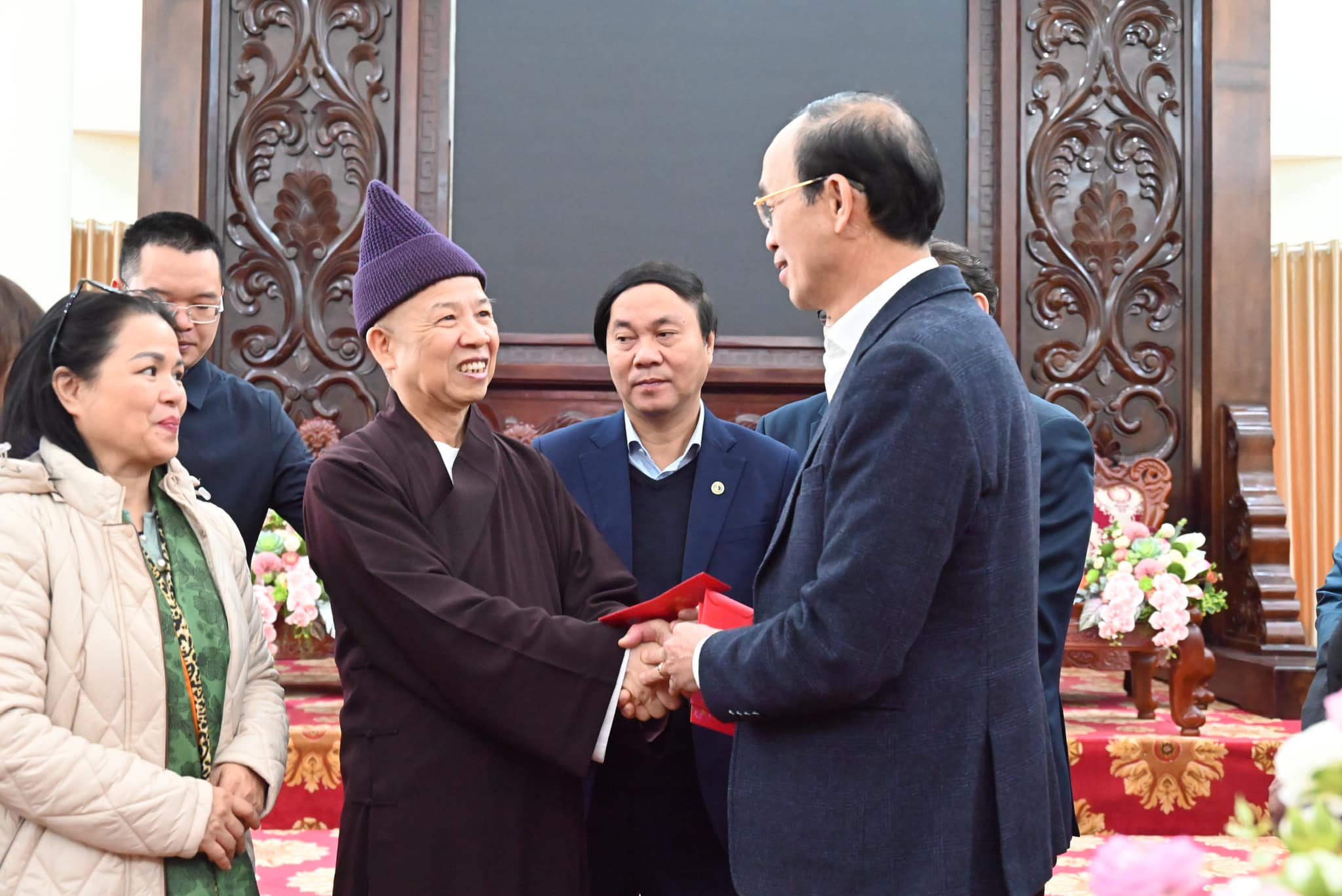 Hoà thượng Viện trưởng chụp ảnh lưu niệm cùng quý Thầy và gửi tặng món quà ý nghĩa nhân dịp đầu xuân Ất Tỵ.