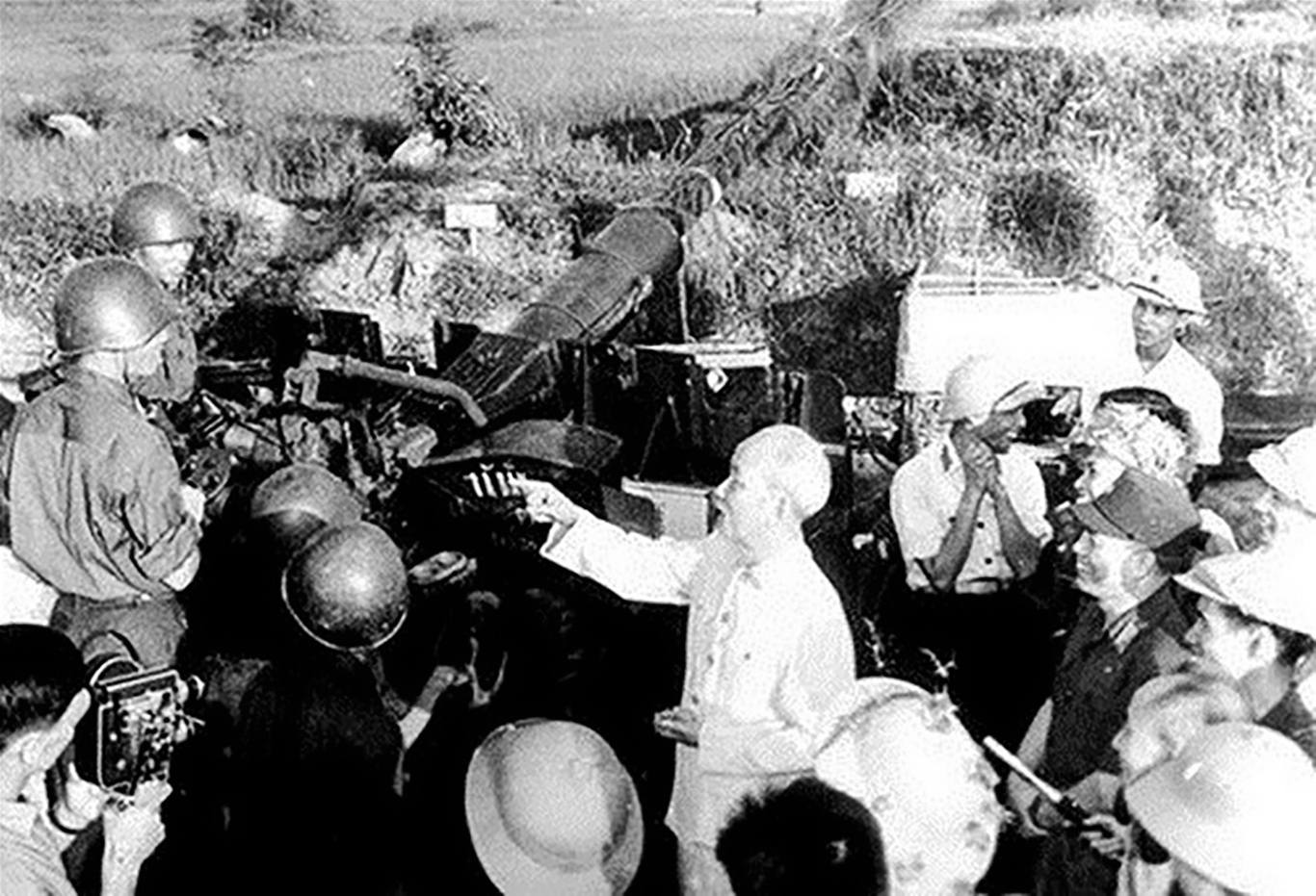 Bác Hồ thăm chiến sỹ phòng không trong kháng chiến chống Mỹ. Ảnh tư liệu