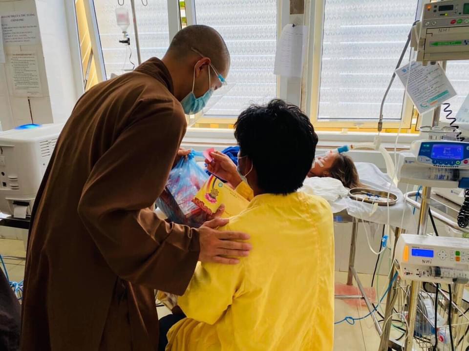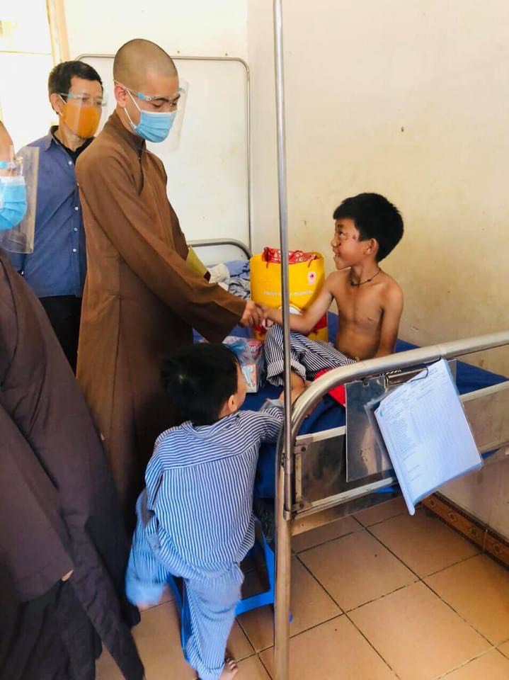 Đại đức Thích Khai Bảo cùng đoàn đã trực tiếp trao hàng trăm phần quà cho các bé đang nằm điều trị tại Khoa Nhi, đồng thời do tình hình dịch bệnh phức tạp, không thể trực tiếp trao quà cho nhiều bệnh nhân ở những khoa khác, đại diện Ban Trị sự đã phối hợp với Bệnh viện, trao nhiều “Phiếu quà tặng”, để các bệnh nhân có thể chủ động thời gian đến nhận quà tại một điểm cố định trong bệnh viện.