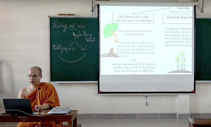 Tốt nghiệp hai trường đại học, thầy Thích Minh Giải ở Thừa Thiên Huế mở lớp ôn thi online miễn phí suốt hơn một năm qua, giúp nhiều học sinh trúng tuyển.