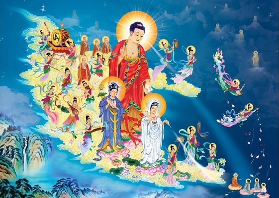 2.2. Tịnh Độ, tên đầy đủ là Thanh tịnh độ, Thanh tịnh độ quốc. “Tịnh” là không nhiễm ô, không dơ bẩn, không tạp nhiễm lỗi lầm phiền não, là thanh tịnh có đầy đủ công đức trí tuệ; “Độ” là cõi, là nước, là thế giới hay nơi chốn nương tựa chung. Nó đối lập với Uế độ, Uế quốc. Theo tinh thần kinh Hoa Nghiêm, Ta-bà hay Cự Lạc cũng chỉ là một trong vô số cõi trong Hoa tạng thế giới. Trong thế giới đó có vô lượng cảnh Phật trang nghiêm thanh tịnh, mỗi cõi có một vị Phật làm chủ thuyết pháp giáo hóa chúng sinh, chứ không phải chỉ có một thế giới cực lạc. Nhưng chúng sinh ở cõi Ta-bà phần đông chỉ khế hợp với cực lạc cho nên Đức Phật nói rõ về cảnh giới Tịnh Độ Tây Phương Cực Lạc, do Đức Phật A-di-đà làm chủ, để chúng sinh dễ tiến tu, phát khởi niềm tin, phát nguyện tu hành, cầu vãng sinh Tịnh Độ qua hạnh “Nhất tâm niệm Phật”.