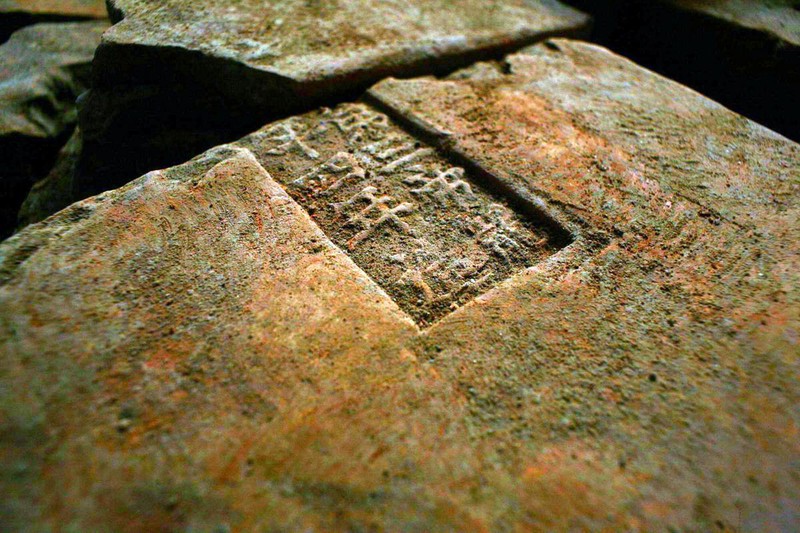 Trên mỗi viên gạch có đề: “Lý gia đệ tam đế Long Thụy Thái Bình tứ niên tạo” (Vua thứ ba đời Lý, năm Long Thụy Thái Bình thứ 4 xây dựng) hoặc “Chương Thánh Gia Khánh”. Theo sử sách, Long Thụy Thái Bình là niên hiệu của vua Lý Thánh Tông từ năm 1054 – 1058.