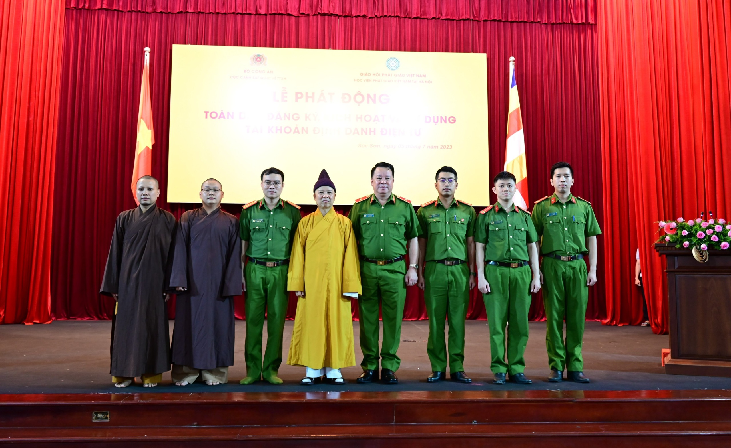 Sáng 05/07/2023, Cục Quản lý hành chính về Trật tự xã hội – Bộ Công an phối hợp với Học viện Phật giáo Việt Nam tại Hà Nội tổ chức Lễ phát động Tăng Ni sinh và lãnh đạo Hội đồng Học viện tham gia đăng ký kích hoạt và sử dụng tài khoản định danh điện tử.