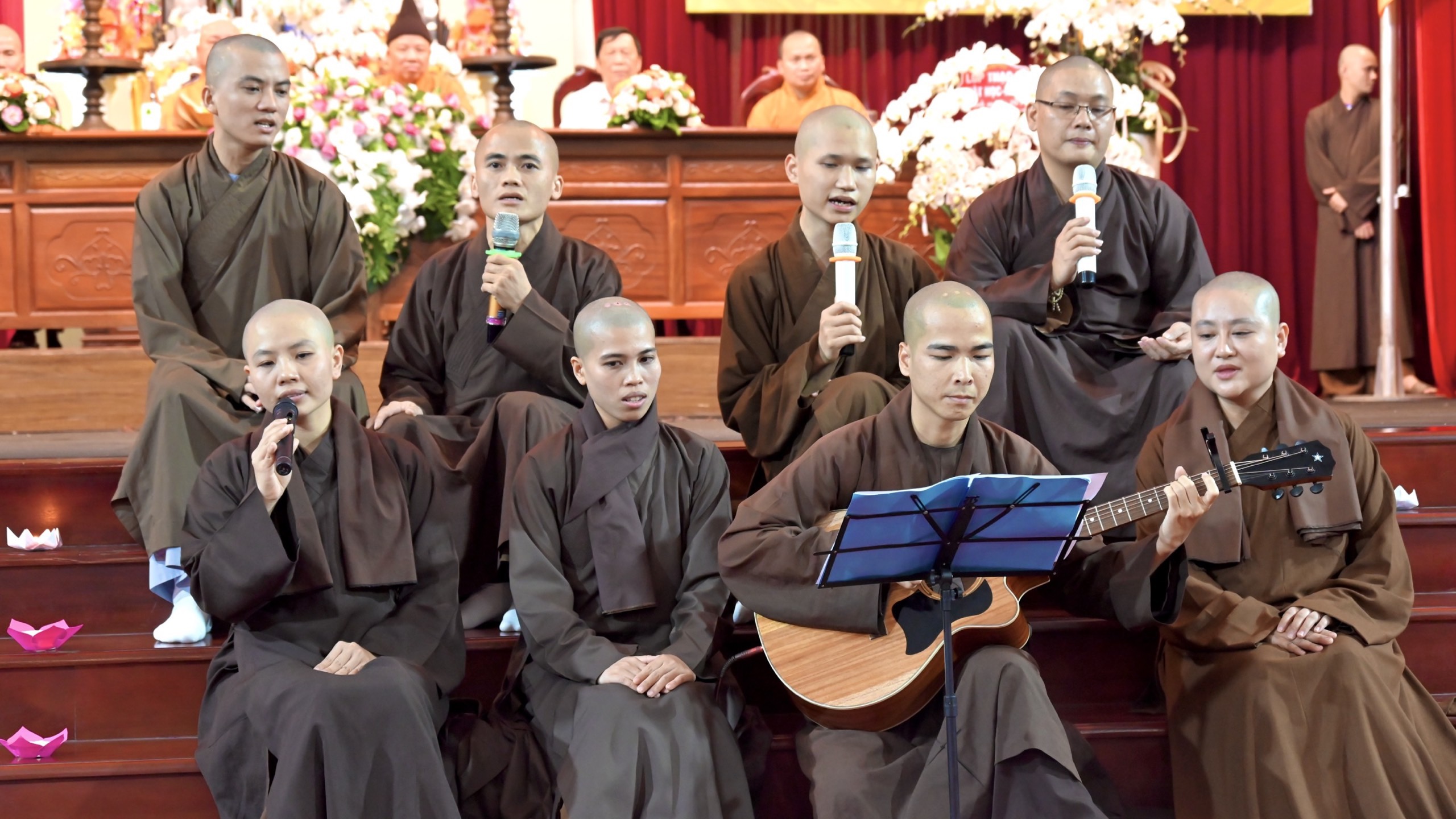 Mở đầu chương trình là các tiết mục văn nghệ do Tăng Ni sinh đang theo học trình bày, với những ca khúc theo chủ đề Phật giáo, công ơn cha mẹ, thầy cô…như những đoá hoa tươi thắm tri ân Chư tôn đức Hội đồng Điều hành, những người thầy thầm lặng, miệt mài để truyền trao kiến thức đến các Tăng, Ni sinh và học viên các khóa.