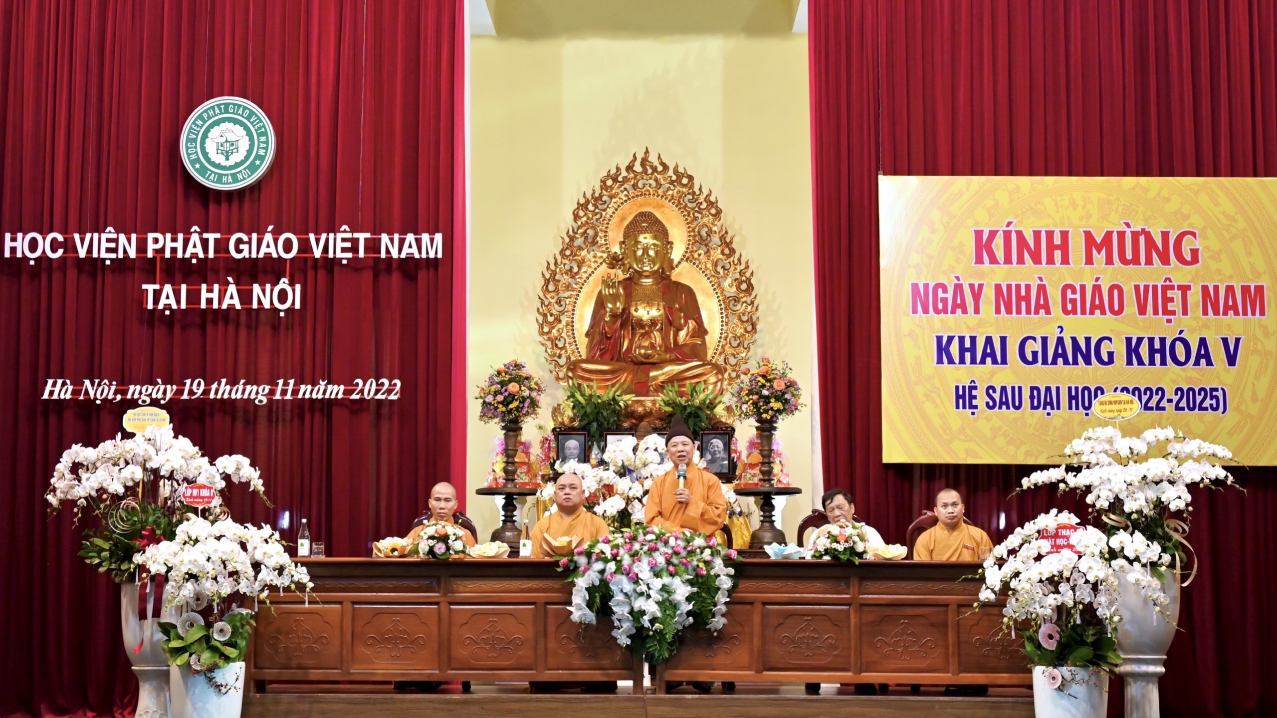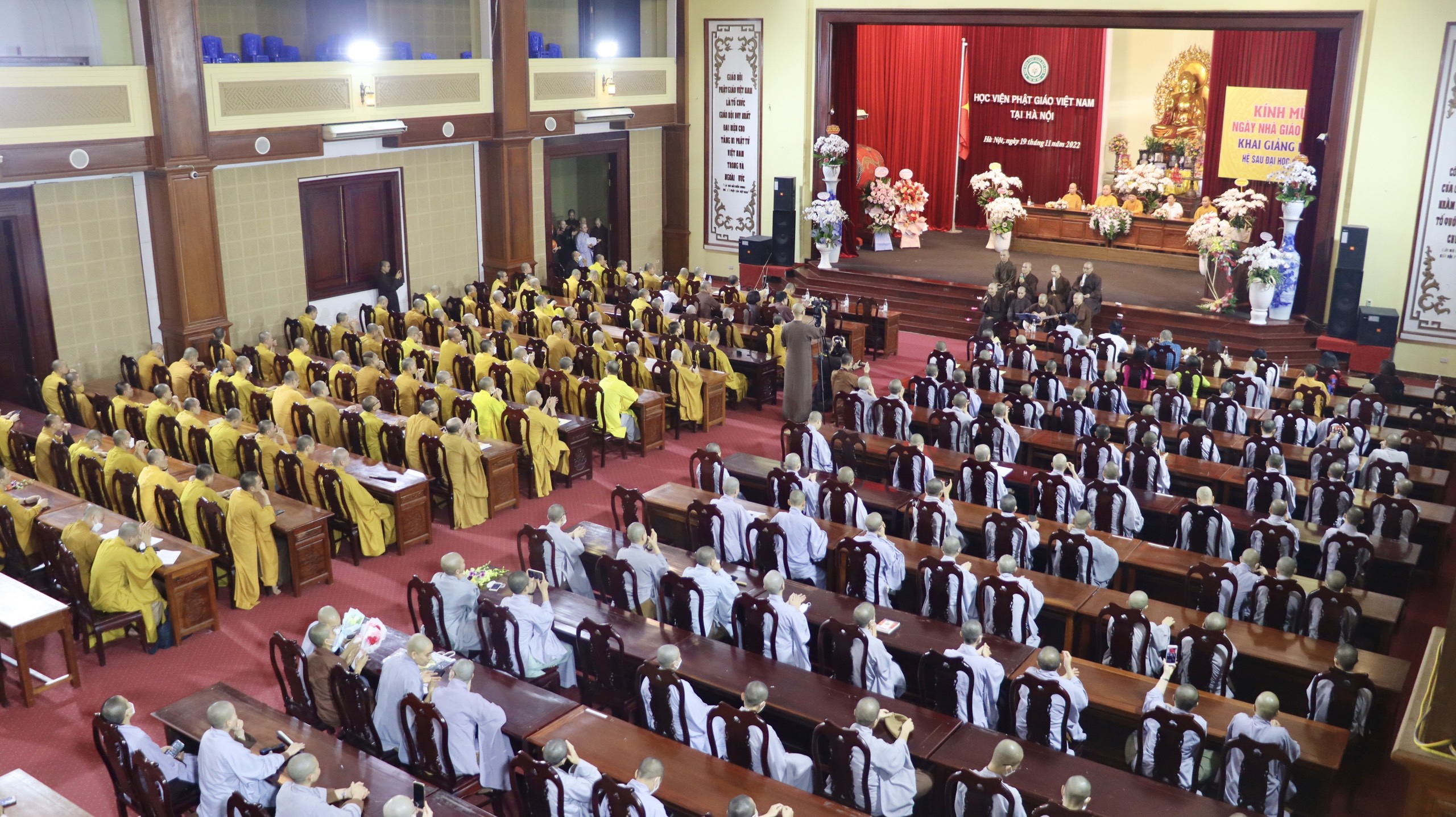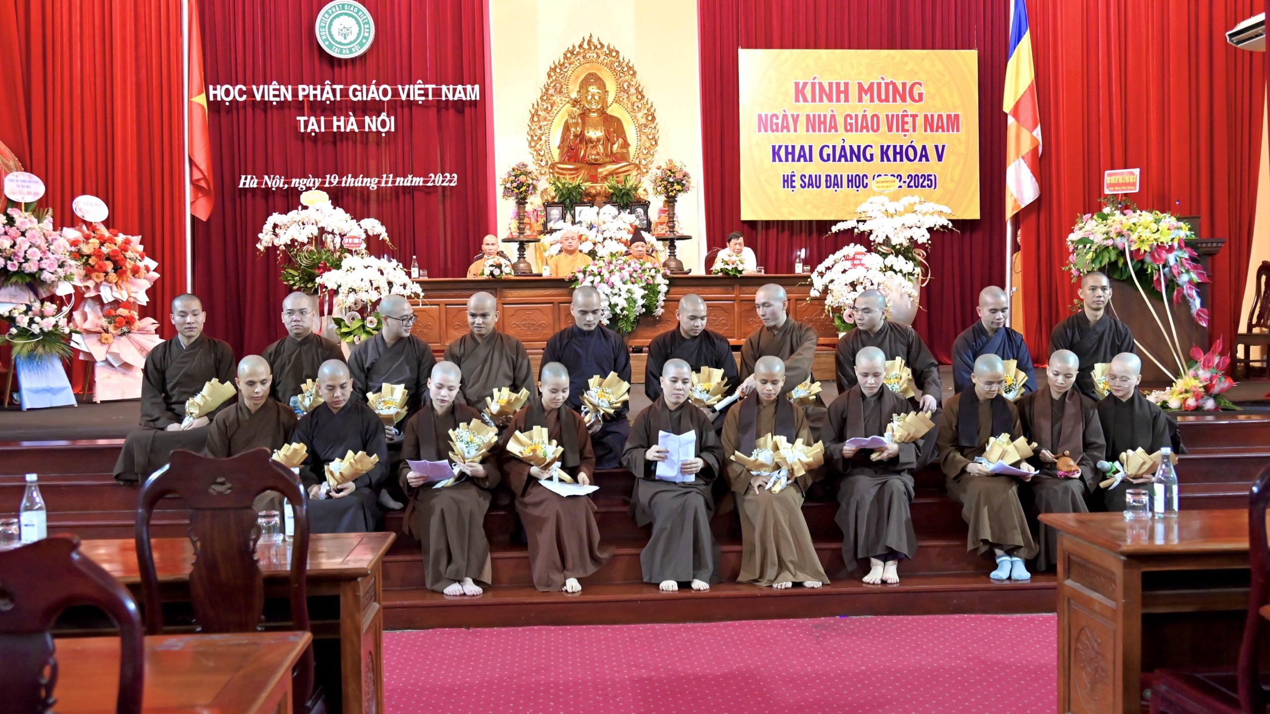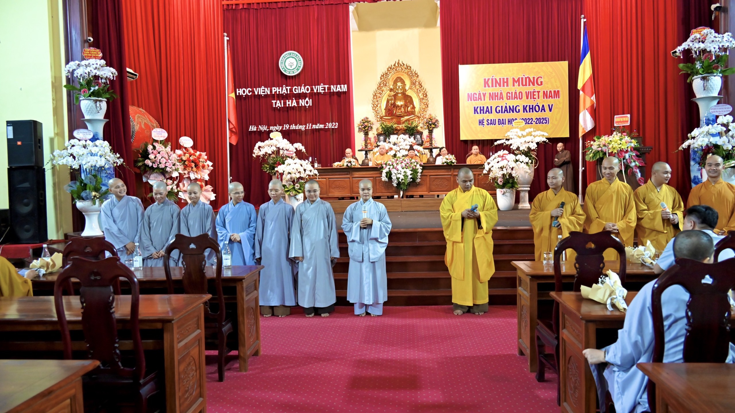 Tối ngày 19/11/2022, Tăng Ni sinh các khoá của Học viện Phật giáo Việt Nam Tại Hà Nội đã về tham dự lễ tri ân ngày 20-11 đến Chư tôn đức Hội đồng Điều hành cùng quý giáo thọ, giảng viên; Và dự lễ Khai giảng Thạc sĩ Phật học khoá V.