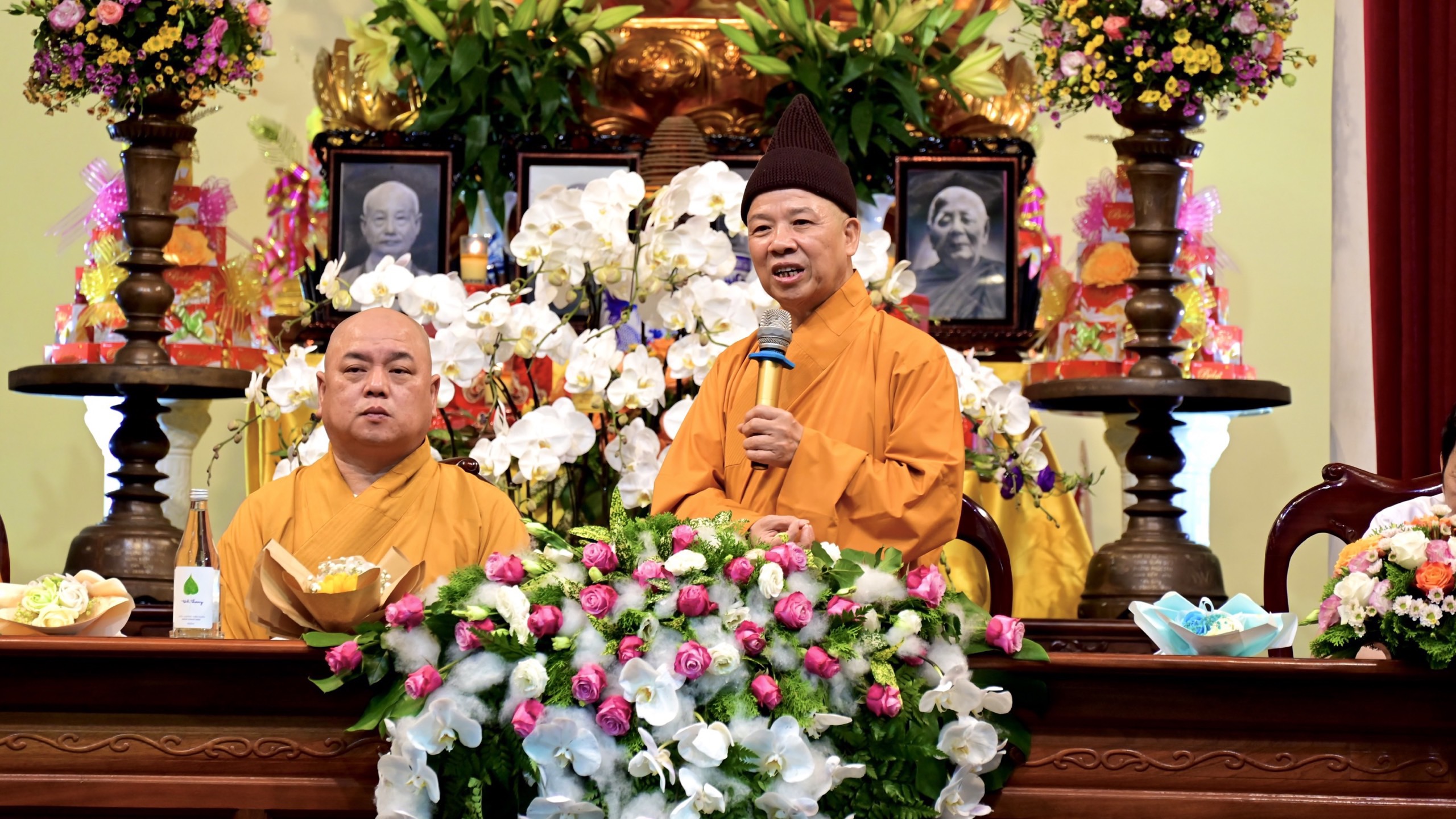 Dịp này, các Tăng Ni các khoá đã tựu về trường và có những đóa hoa, quà dâng lên chư tôn đức và chư vị giảng viên trong ngày lễ tri ân.