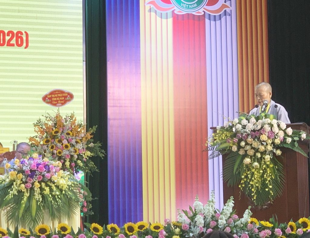 Phát biểu tại Đại hội HT. Thích Thanh Quyết – Phó Chủ tịch GHPG VN, Trưởng BTS Phật giáo tỉnh Hà Nam ghi nhận những đóng góp to lớn của Tăng Ni trên địa bàn huyện trong nhiệm kỳ vừa qua. Hòa thượng cho biết, nhiệm kỳ này BTS đã thành công khi đưa được nhiều Tăng Ni trẻ tham gia vào BTS, Hòa thượng yêu cầu các thành viên BTS nhiệm kỳ mới cần tích cực và cần phải cố gắng thêm. Trên địa bàn có 02 tôn giáo chính là Phật giáo và Công giáo, Hòa thượng yêu cầu Tăng Ni phải đoàn kết, giúp đỡ và trân trọng hòa hợp với các tôn giáo khác.