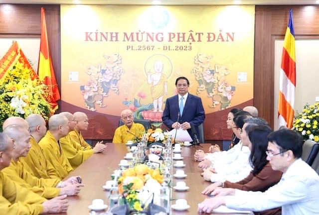 Thủ tướng trân trọng gửi tới chư tôn giáo phẩm Giáo hội Phật giáo Việt Nam, tăng ni, đồng bào Phật tử trong và ngoài nước những lời chúc mừng tốt đẹp nhất; chúc Đại lễ Phật đản Phật lịch 2567 của Giáo hội Phật giáo Việt Nam thành tựu viên mãn.